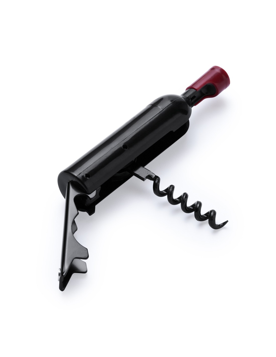 Original sacacorchos y abridor en forma de botella de vino, con imán para tener a mano en la nevera.