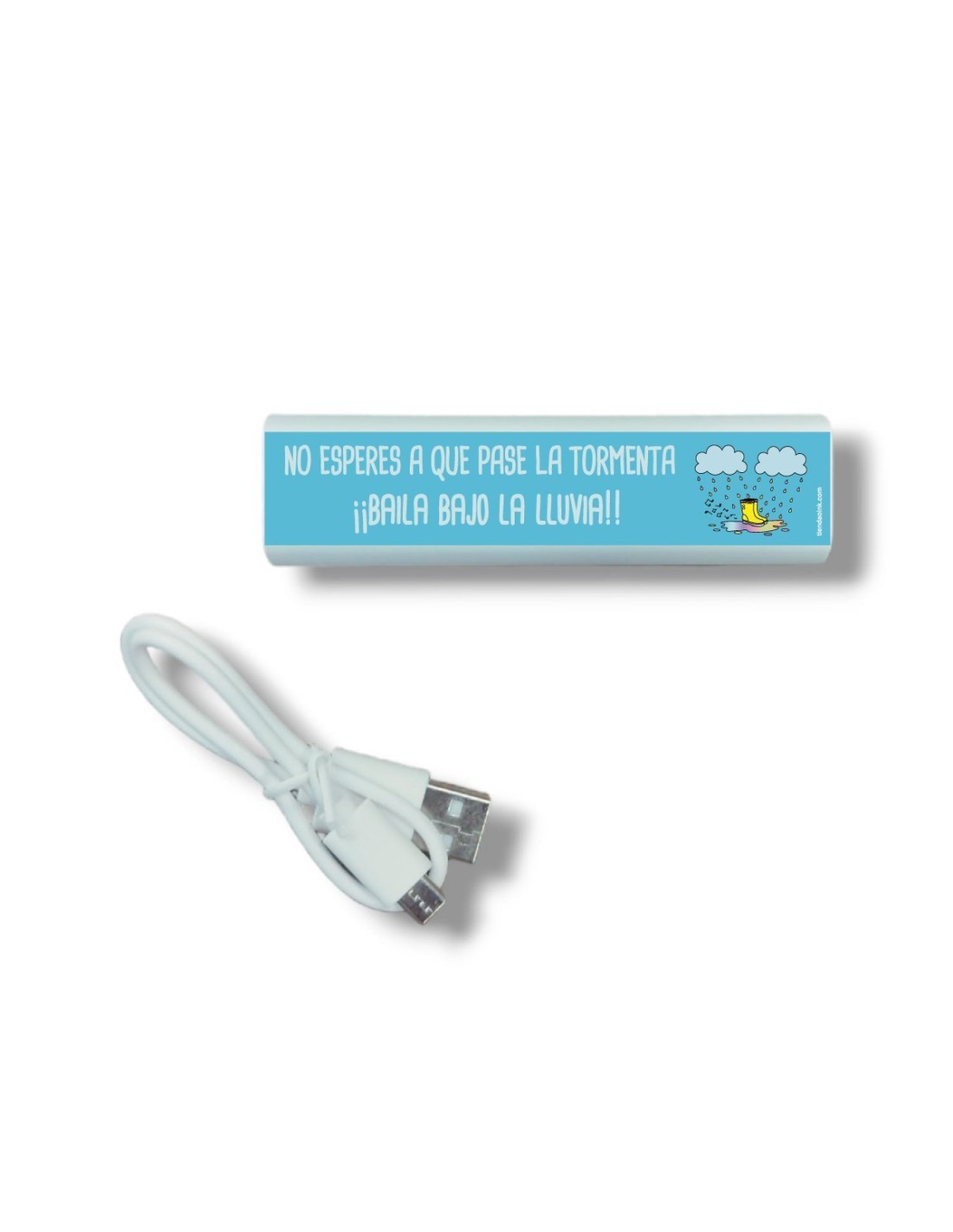 Power bank con mensaje "...baila bajo la lluvia" cargar tus dispositivos con rapidez en cualquier lugar.