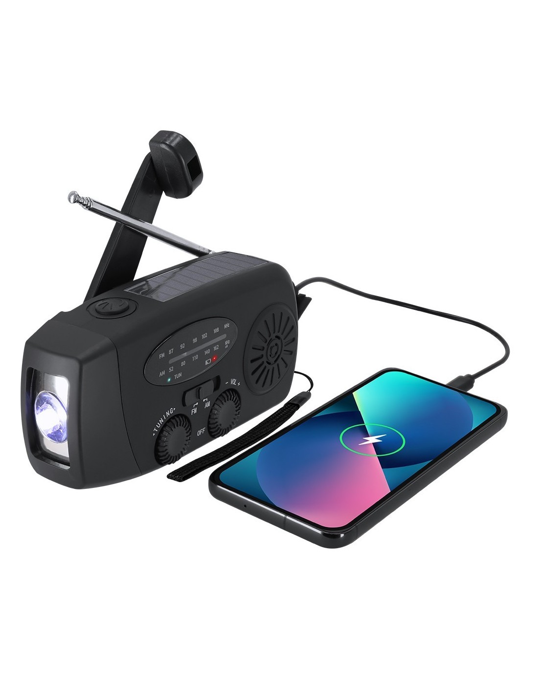 Radio Multifunción de Emergencia fabricada en resistente ABS. Ofrece una amplia gama de funciones útiles para el uso diario, actividades al aire libre o situaciones de emergencia.
