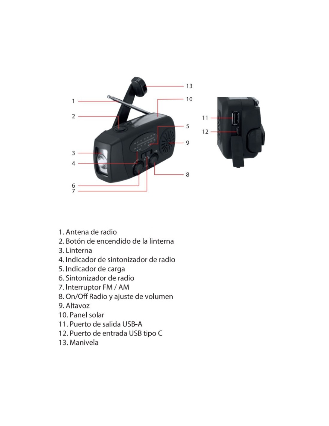 Radio Multifunción de Emergencia fabricada en resistente ABS. Ofrece una amplia gama de funciones útiles para el uso diario, actividades al aire libre o situaciones de emergencia. Incluye: