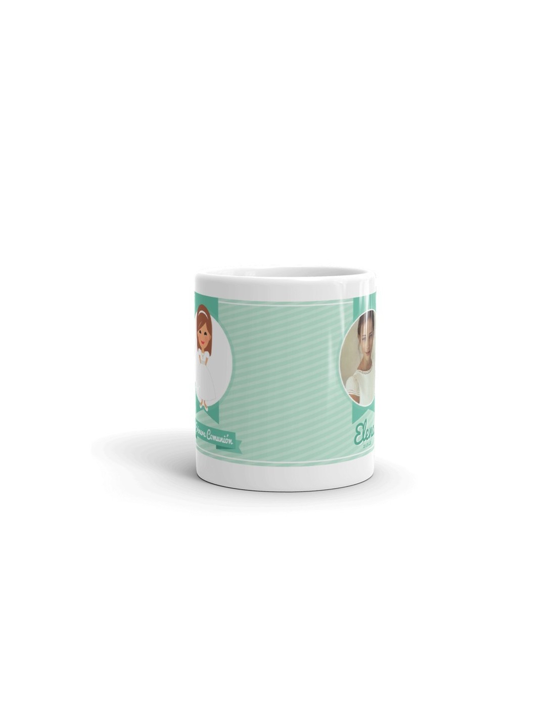 TAZA COMUNIÓN VERDE NIÑA CON FOTO PERSONALIZADA