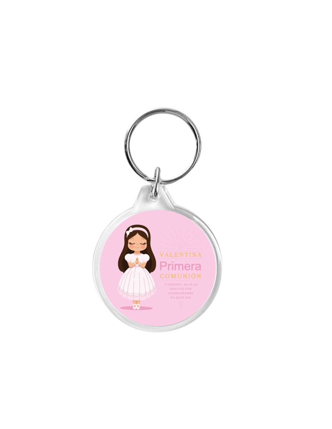 Original llavero personalizado para comunión con diseño minimal con el dibujo de una niña de comunión.