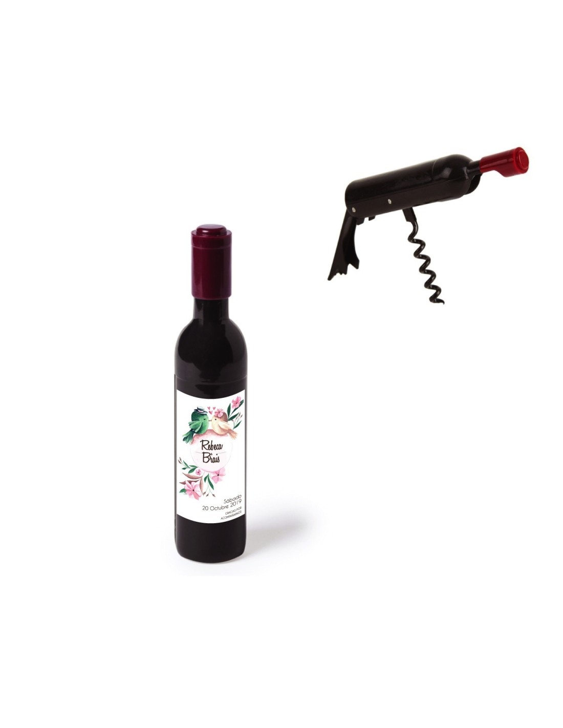 BOTELLA SACACORCHOS PERSONALIZADO BODA PÁJAROS