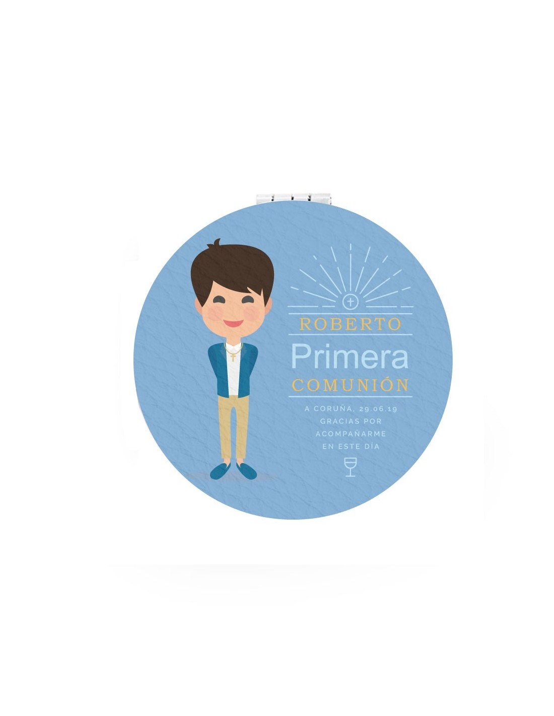ESPEJO DE BOLSO CON AUMENTO - COMUNIÓN MINIMAL AZUL PERSONALIZADO