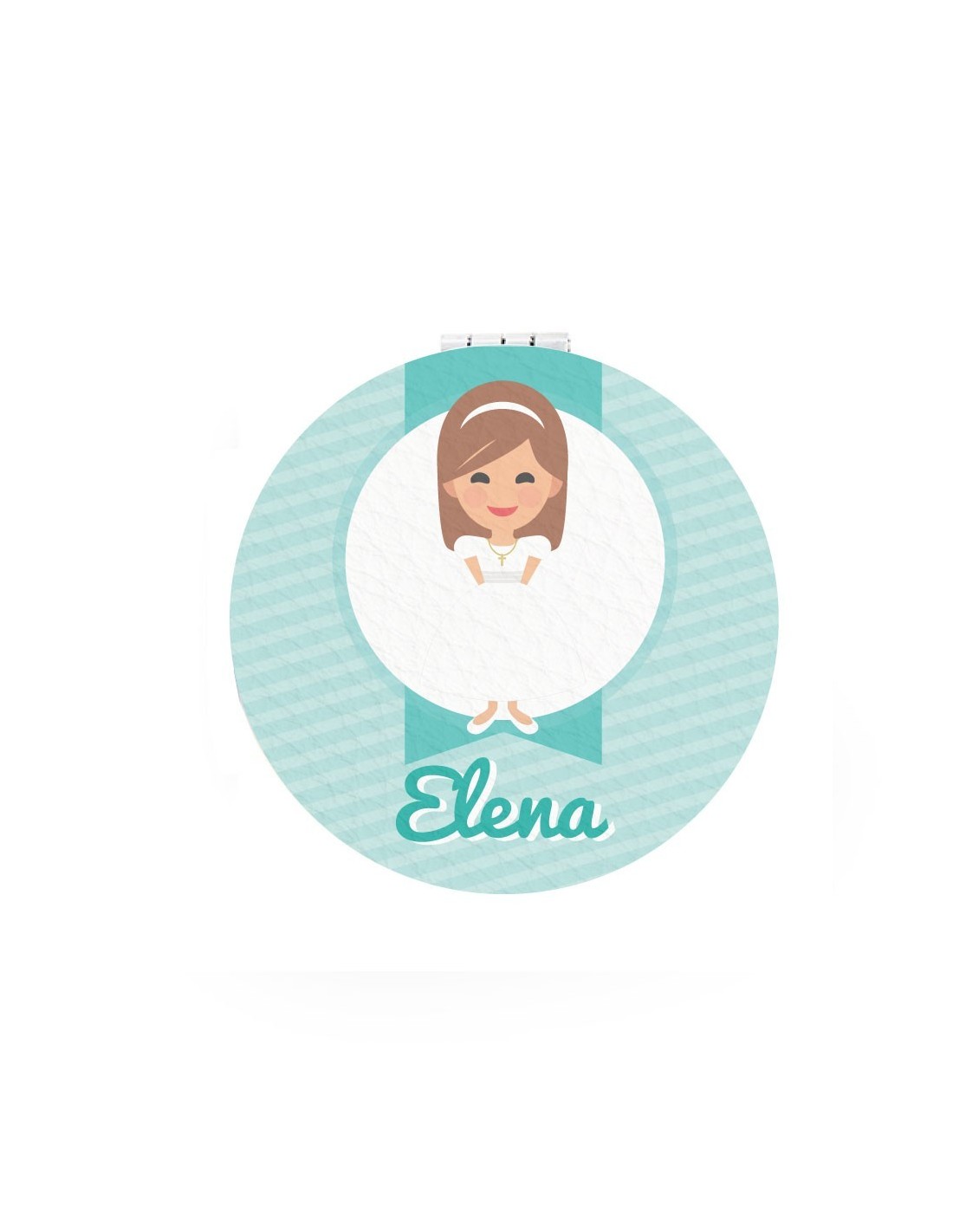 ESPEJO DE BOLSO CON AUMENTO - COMUNIÓN VERDE NIÑA PERSONALIZADO