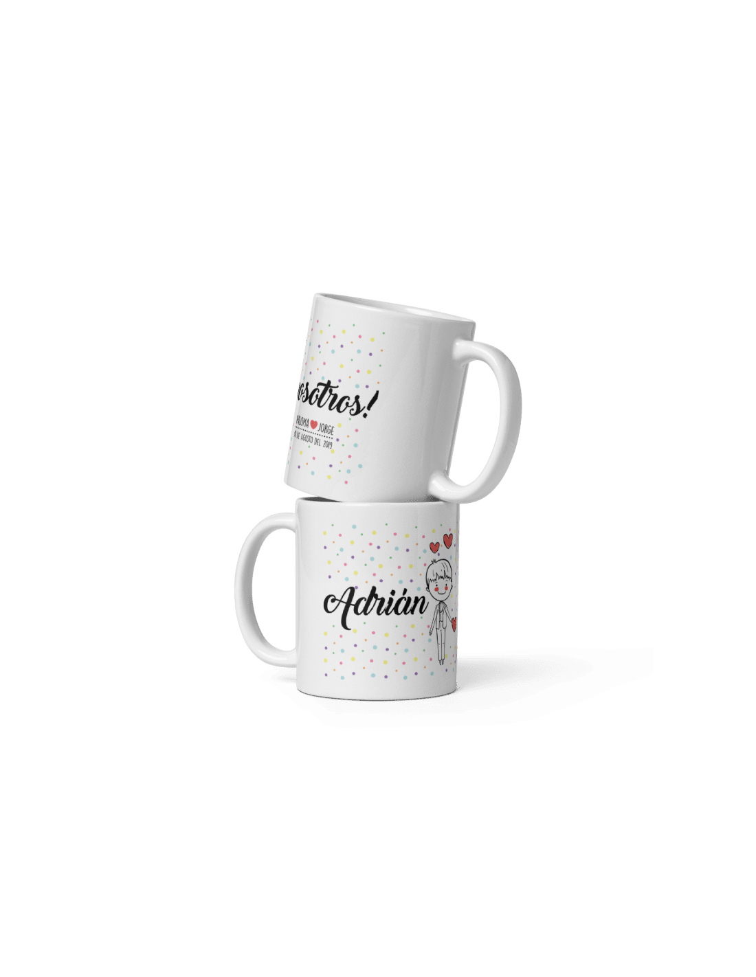 No olvide guardar su personalización para poder añadirla al carritoPack compuesto por dos tazas personalizadas de porcelana blanca con asa decoradas con el mensaje
