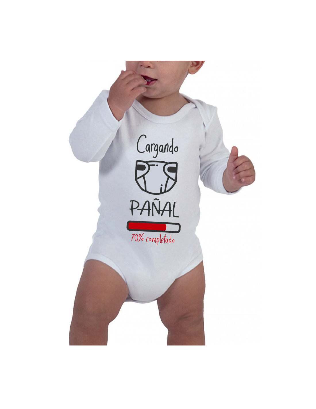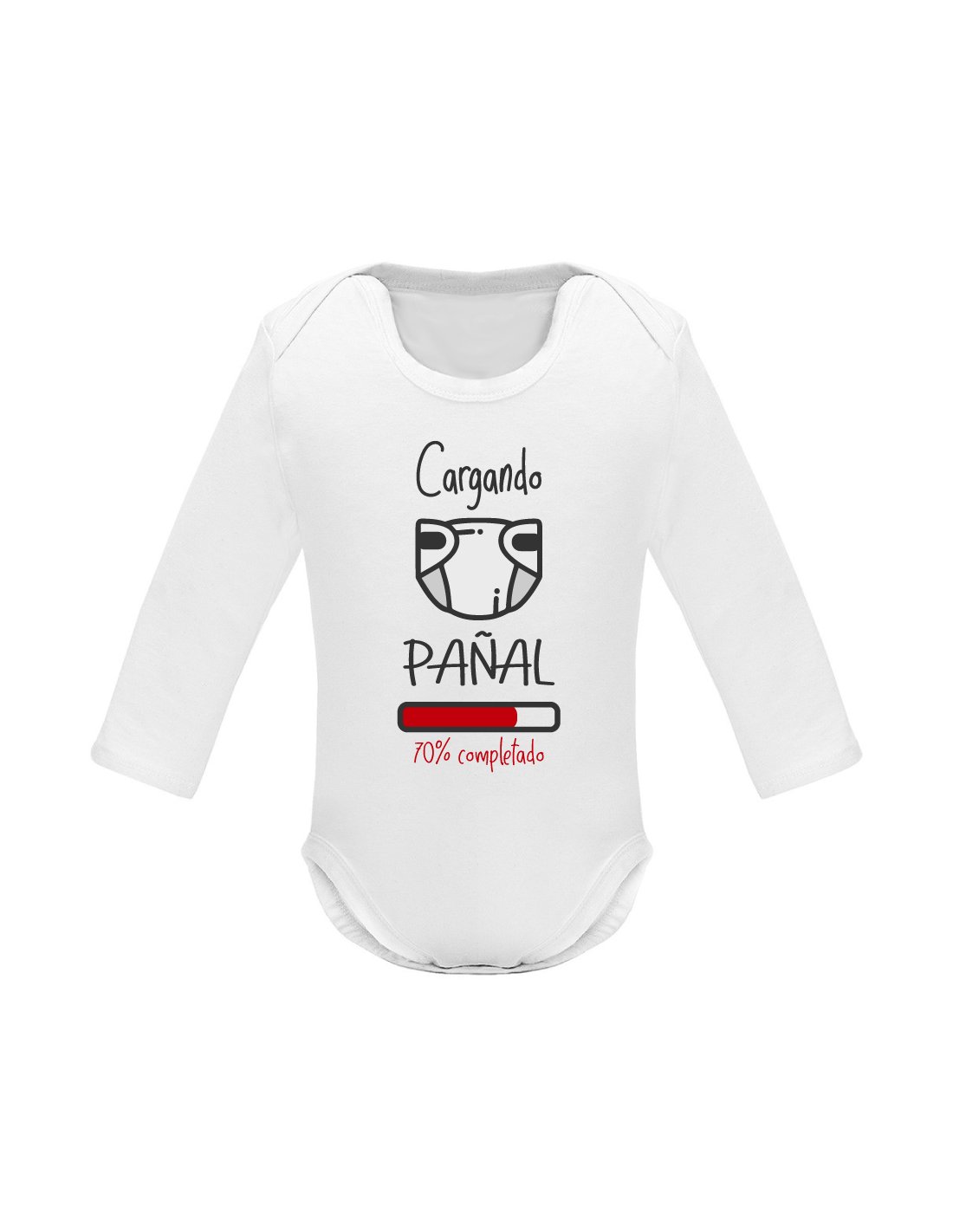 Original y divertido body de algodón de manga larga decorado con el mensaje "cargando pañal".