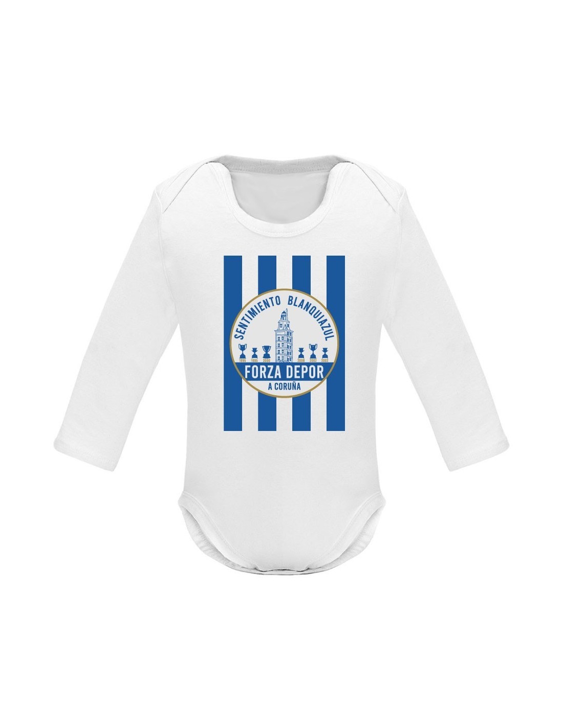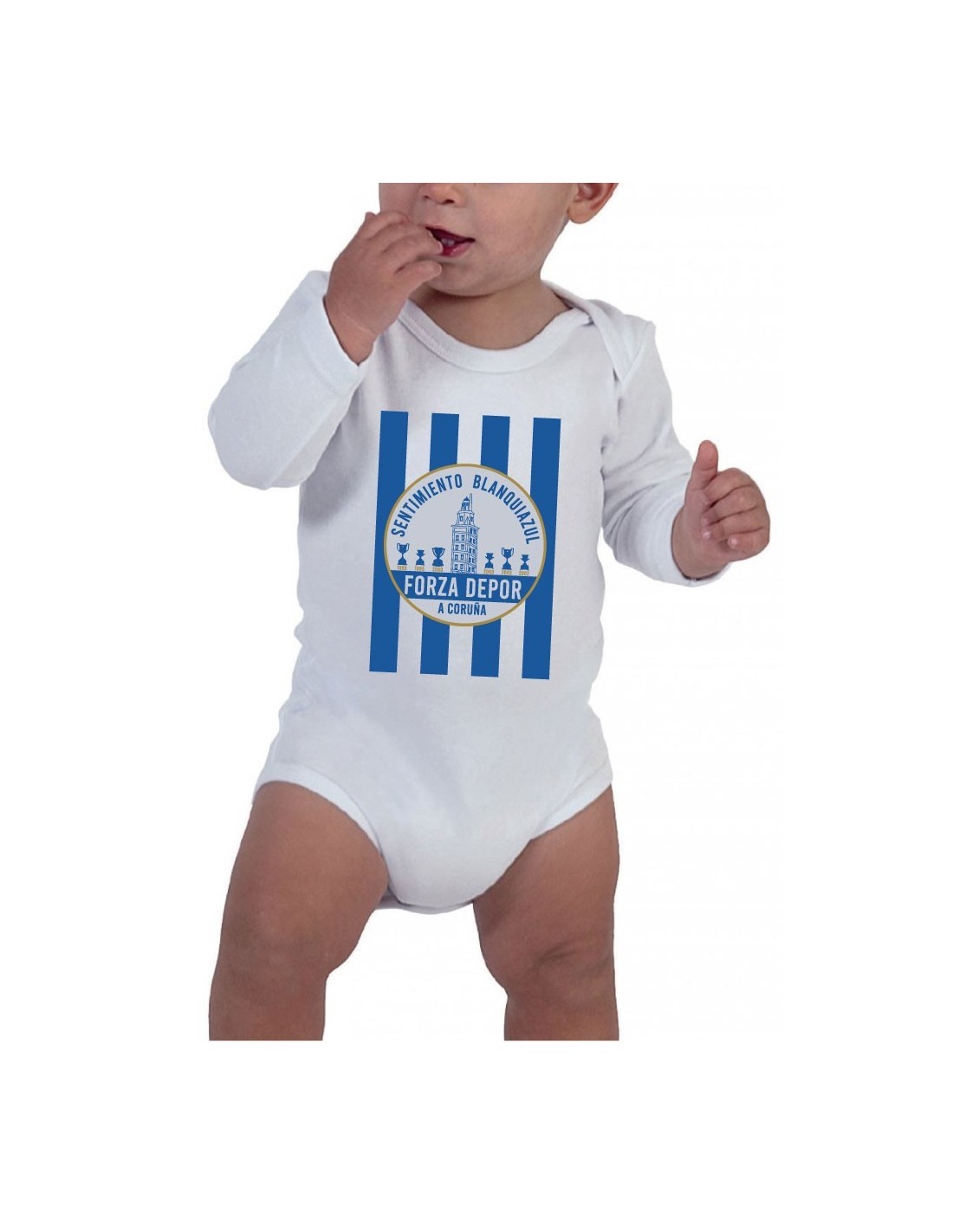 Original y divertido body de algodón de manga larga decorado con el mensaje "sentimiento blanquiazul".