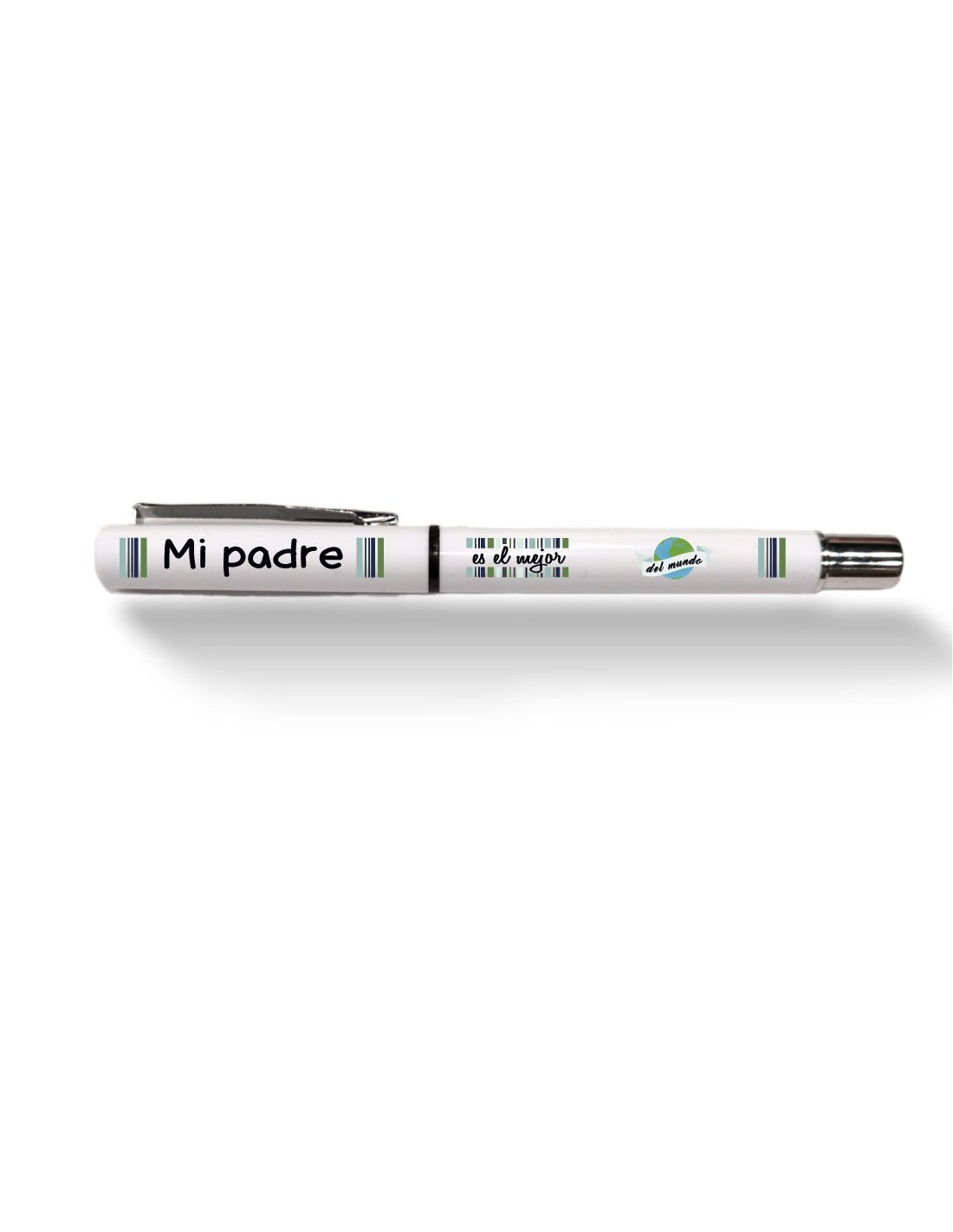 Original bolígrafo tipo roller de tinta azul decorado con el mensaje "sonrie cada día, la vida te devolverá la sonrisa".