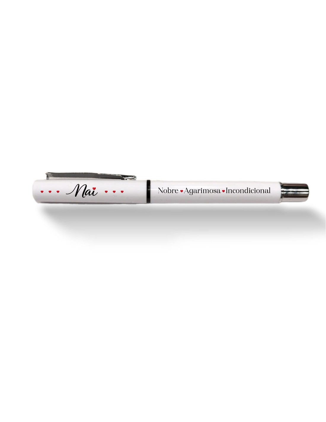 Original bolígrafo tipo roller de tinta azul decorado con mensaje en gallego "Nai: Nobre, agarimosa, incondicional".