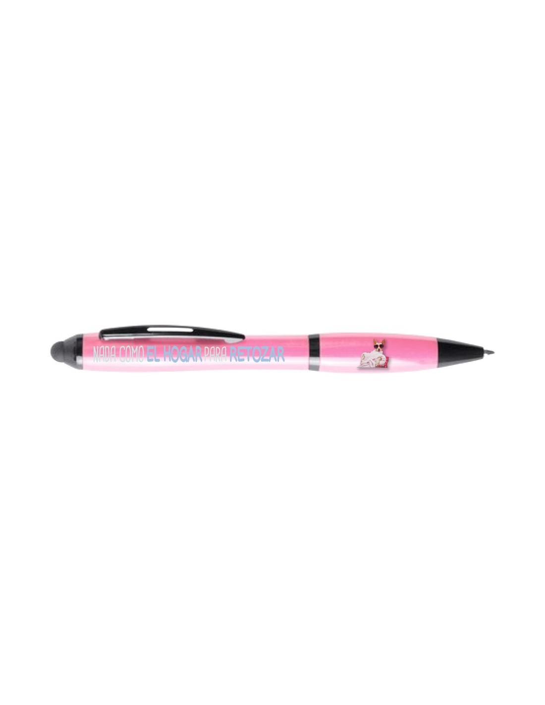 Original bolígrafo puntero rosa decorado con el mensaje "nada como el hogar para retozar".