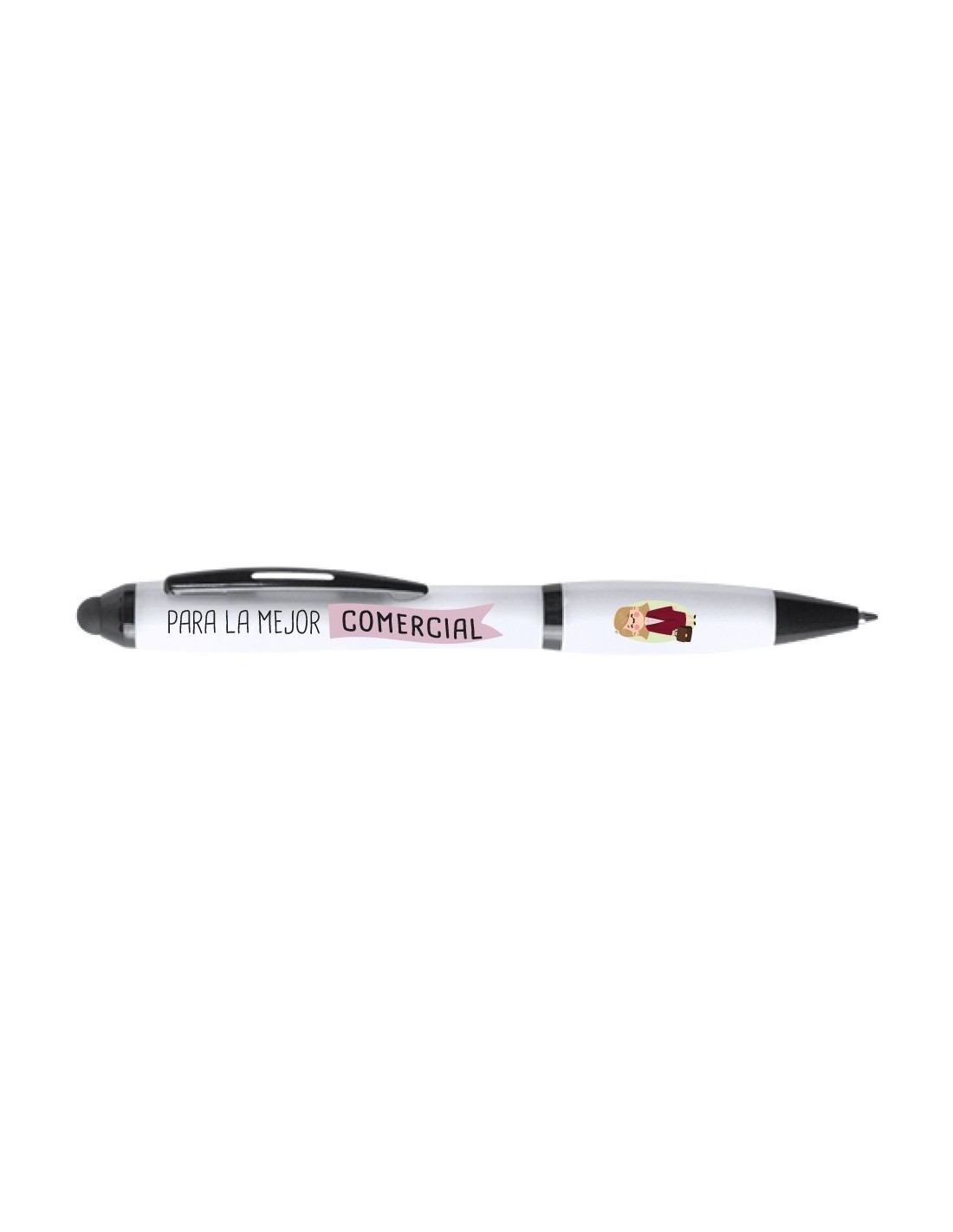 Original bolígrafo puntero blanco decorado con el mensaje "Para la mejor comercial".