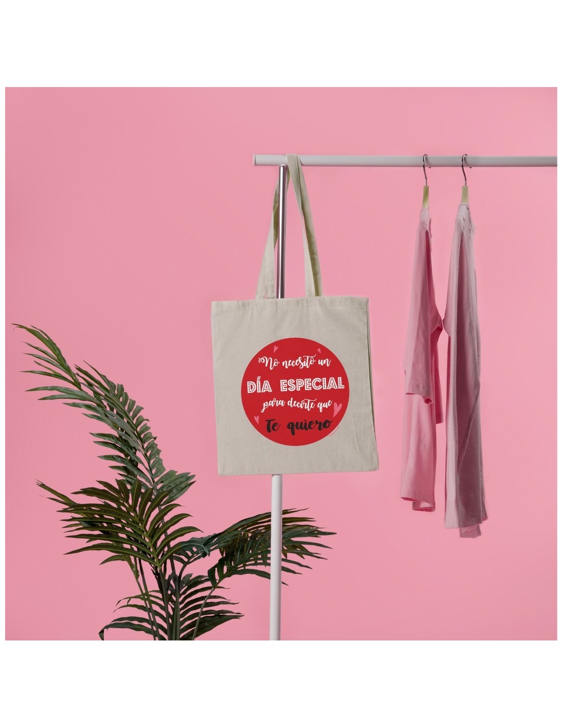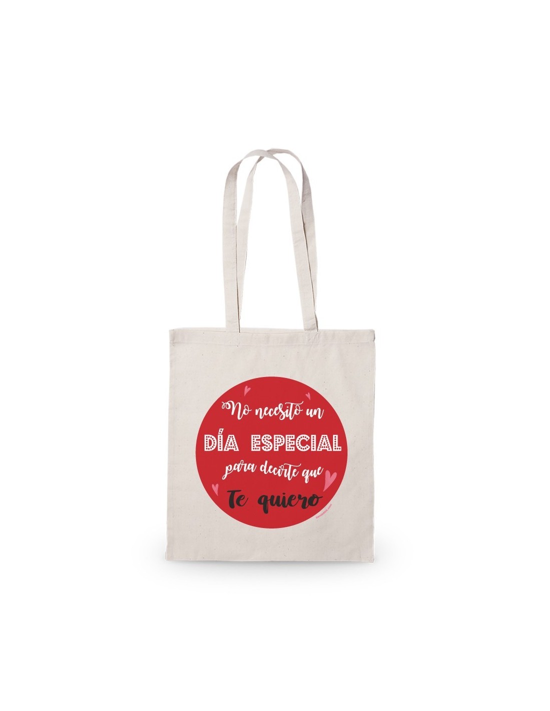 Amplia y ligera bolsa de algodón decorada con el mensaje "no necesito un día especial para decirte que te quiero".