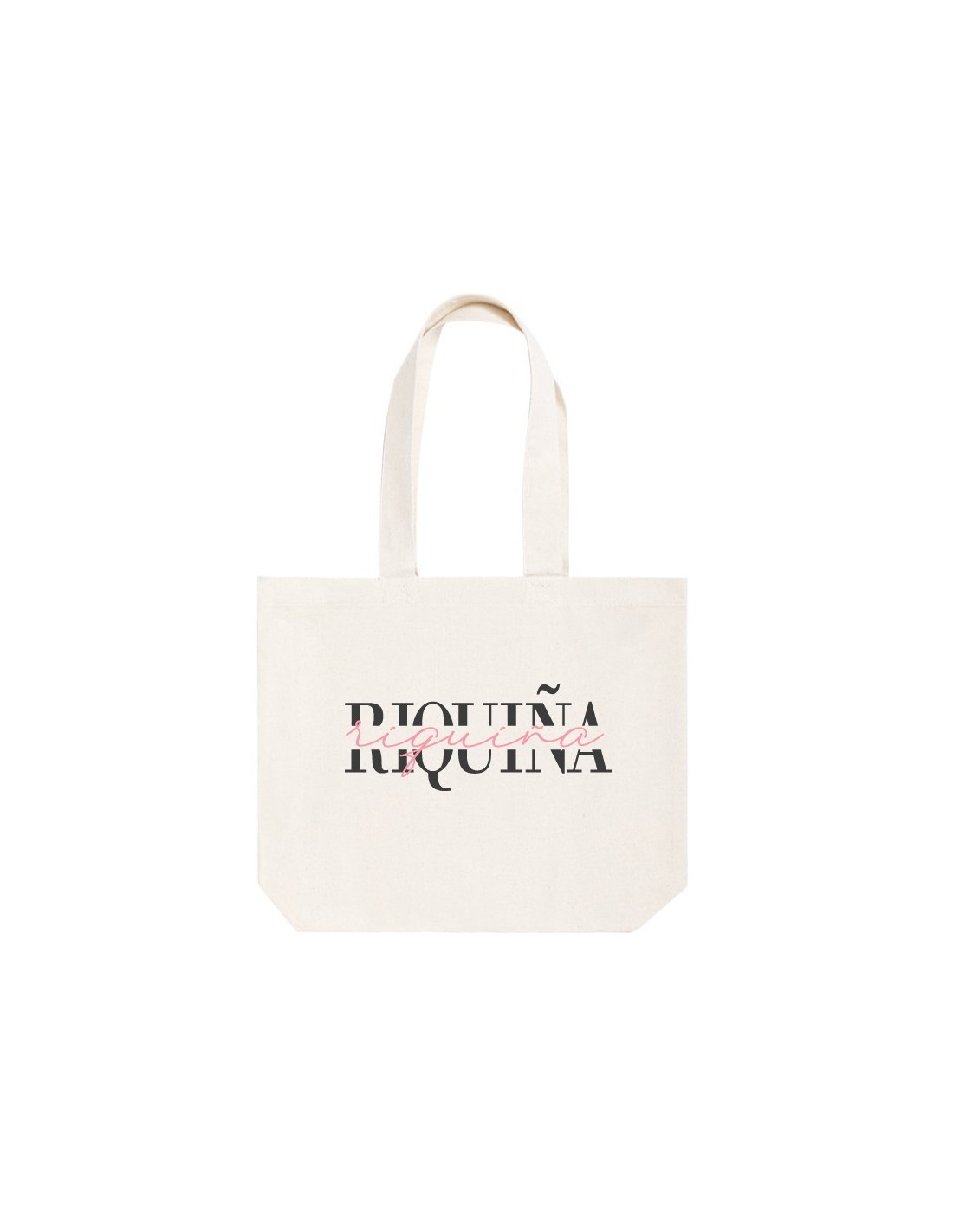 Amplio y ligero capazo de algodón decorado con el mensaje "riquiña".