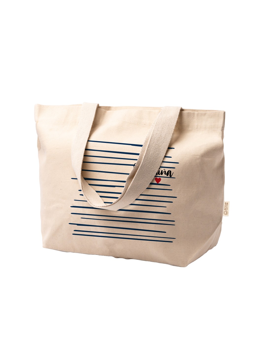 Amplio y ligero capazo de algodón decorado con el mensaje "morriña".