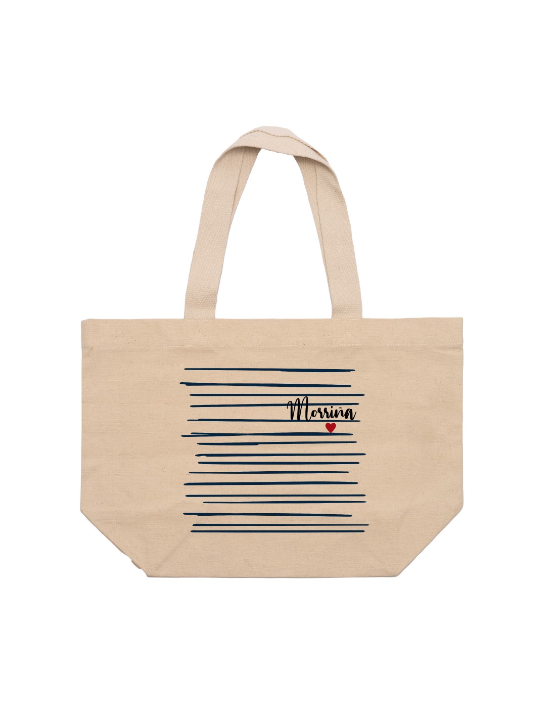 Amplio y ligero capazo de algodón decorado con el mensaje "morriña".