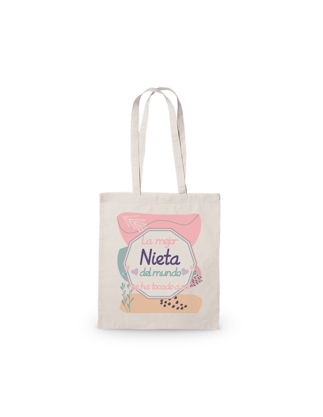 Amplia y ligera bolsa de algodón decorada con el mensaje "la mejor nieta del mundo me ha tocado a mi".