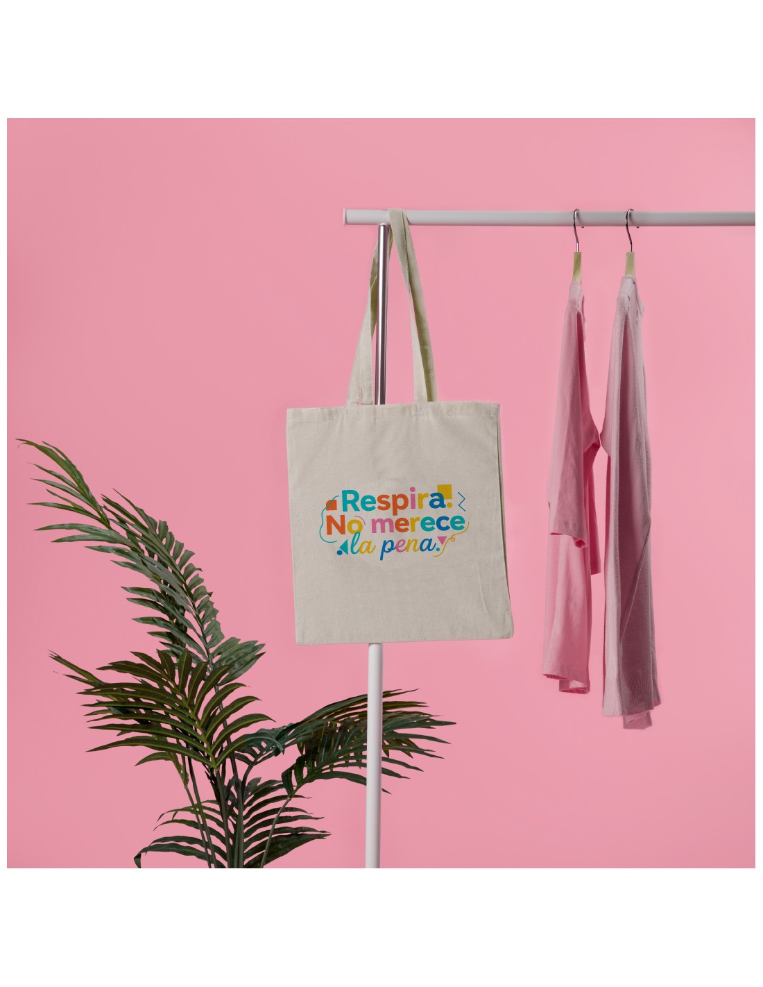 Amplia y ligera bolsa de algodón decorada con el mensaje "respira, no merece la pena".