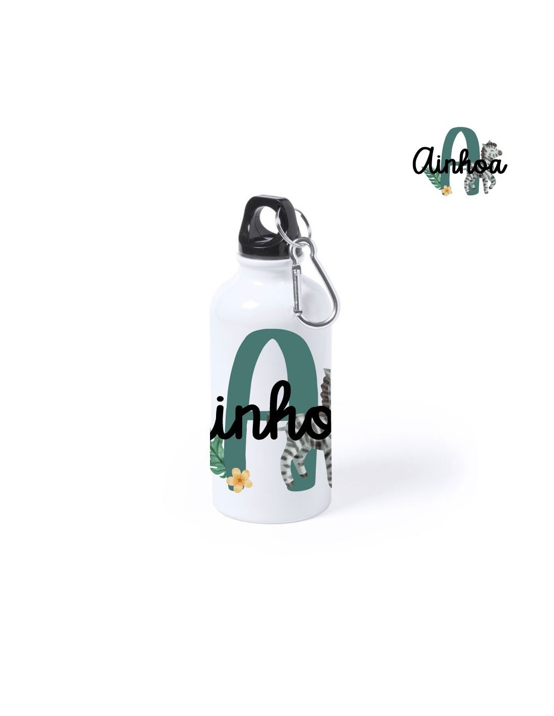 Original botella de aluminio de 400 ml. decorada con el nombre "Ainhoa".