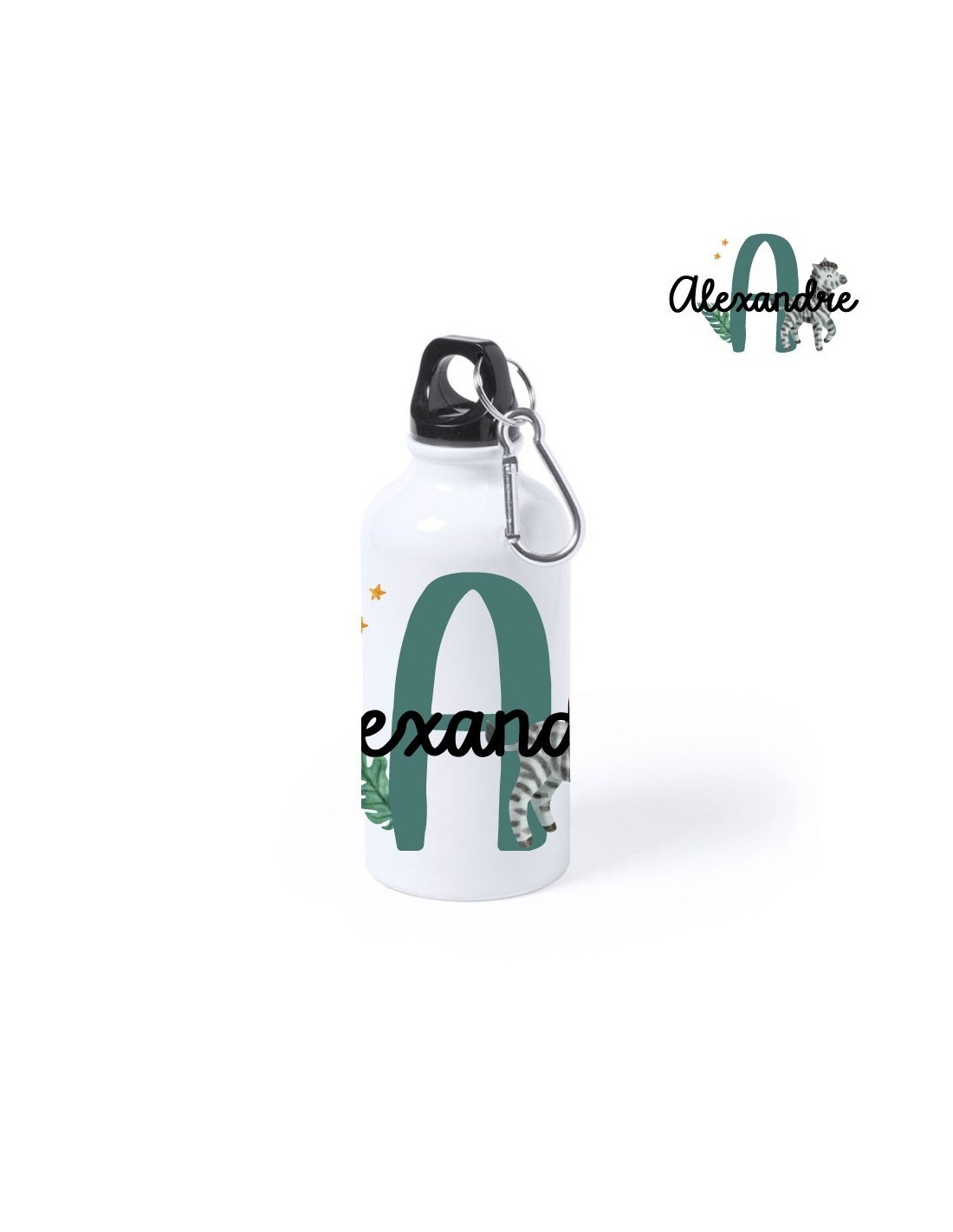 Original botella de aluminio de 400 ml. decorada con el nombre "Alexandre".