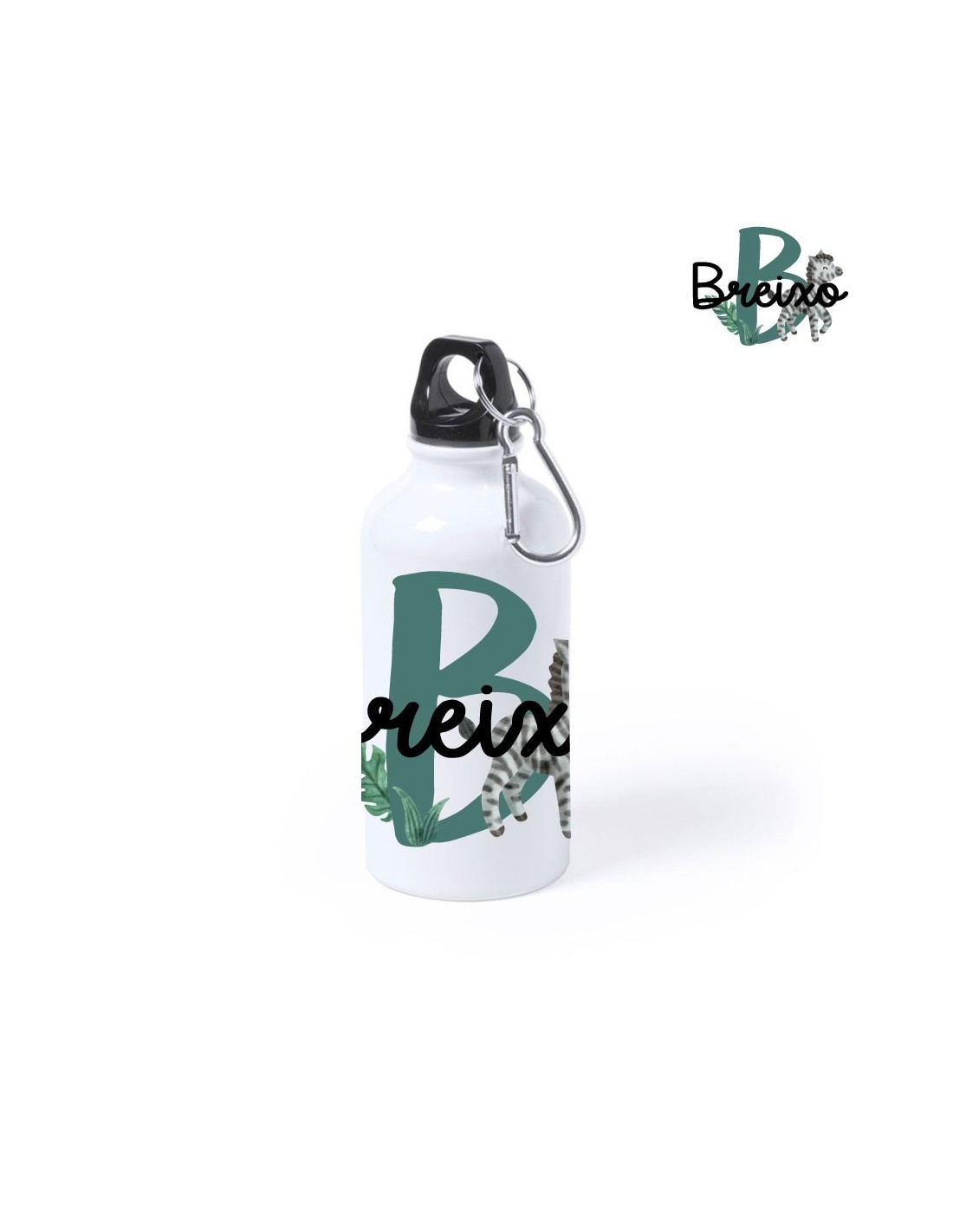 Original botella de aluminio de 400 ml. decorada con el nombre "Breixo".