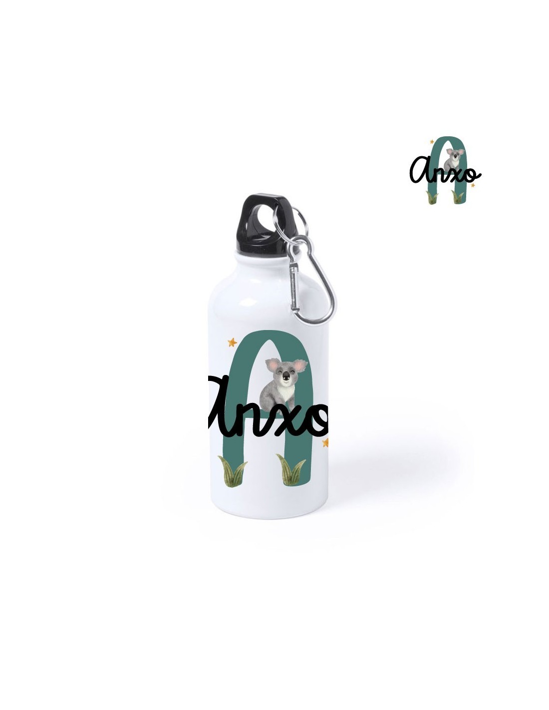 Original botella de aluminio de 400 ml. decorada con el nombre "Anxo".