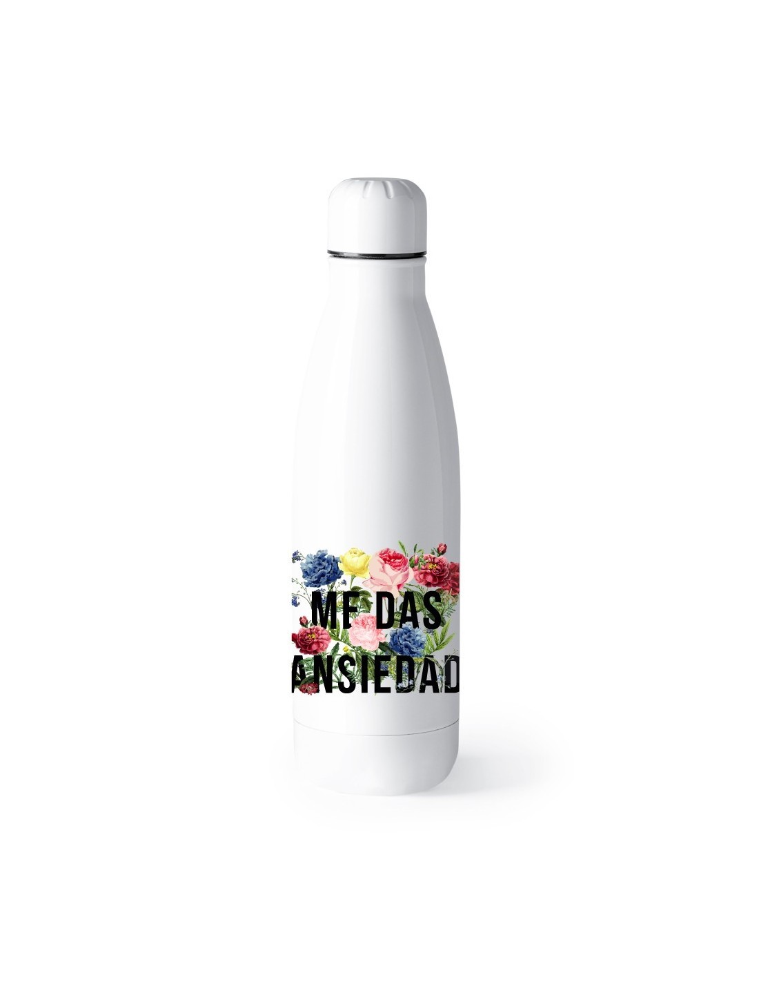 Original y práctico bidón termo con doble pared decorado con el mensaje "me das ansiedad".