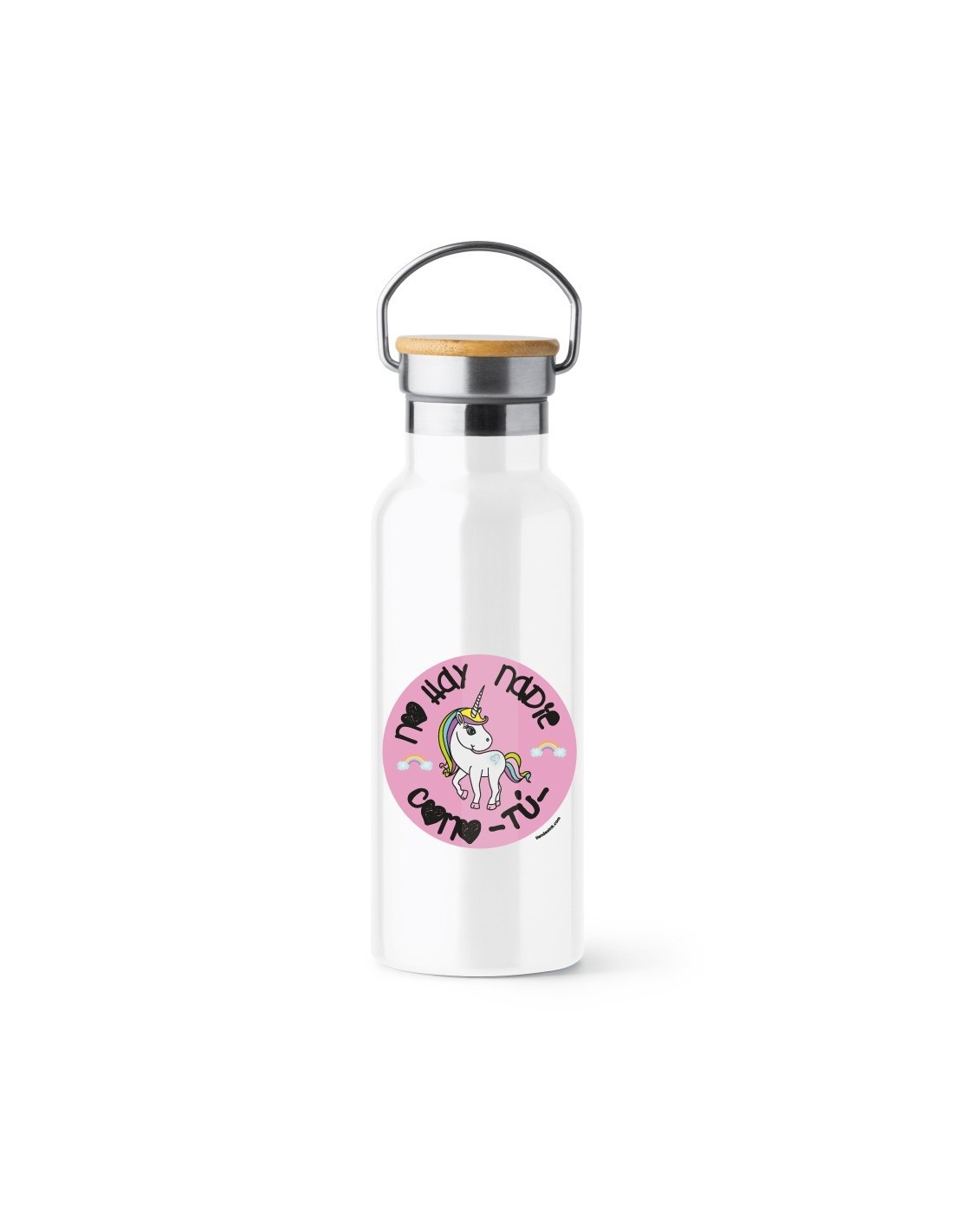 Original y práctico bidón termo con doble pared decorado con el mensaje "no hay nadie como tú".