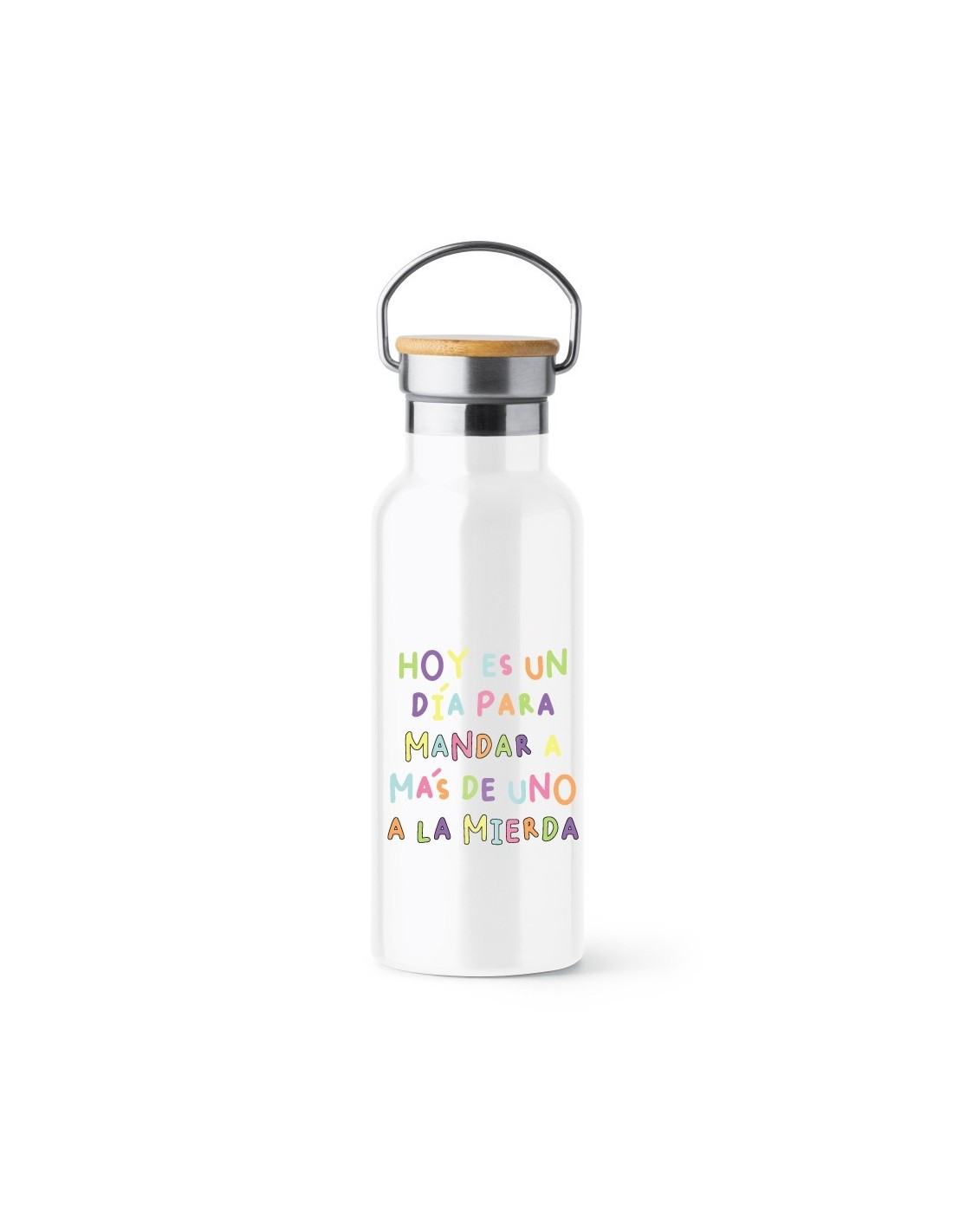 Original y práctico bidón termo con doble pared decorado con el mensaje "hoy es un gran día para mandar a más de uno a la mierda".
