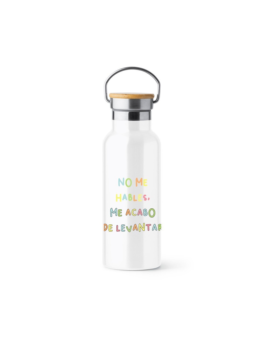 Original y práctico bidón termo con doble pared decorado con el mensaje "no me hables, me acabo de levantar".
