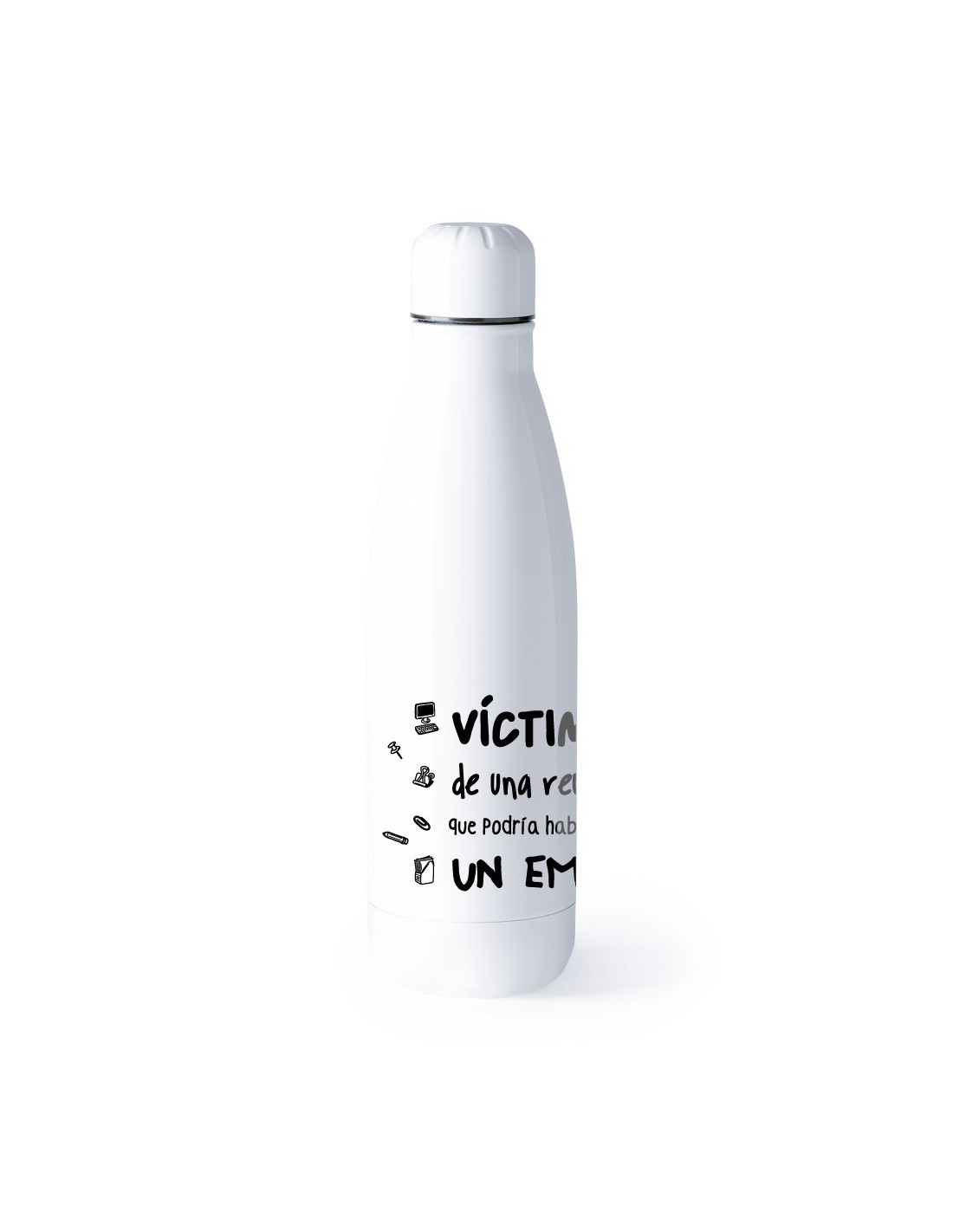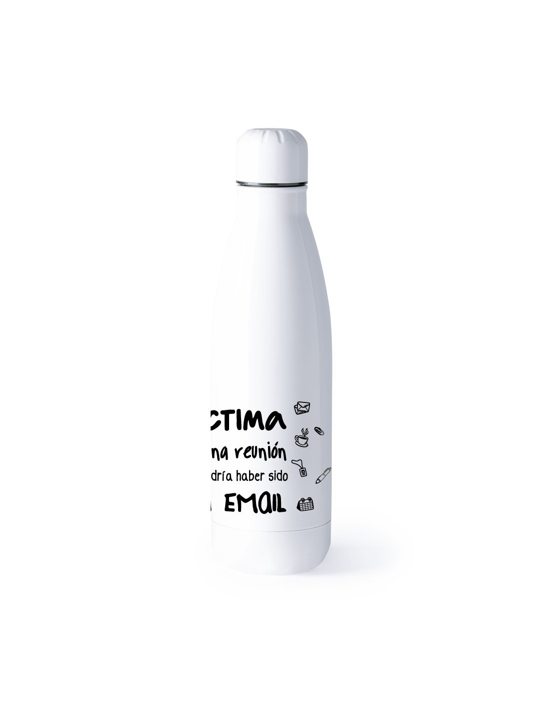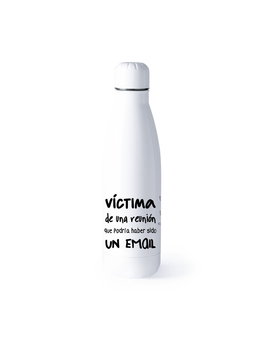 Original y práctico bidón termo con doble pared decorado con el mensaje "víctima de una reunión que podría haber sido un email".