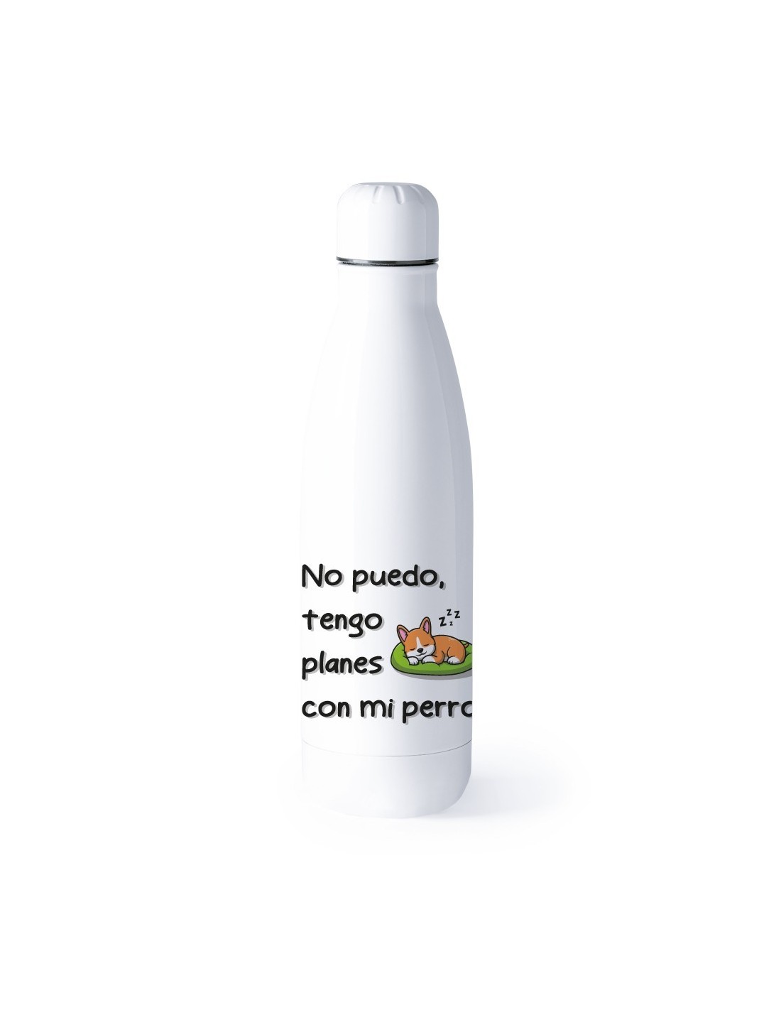 Original y práctico bidón termo con doble pared decorado con el mensaje "no puedo, tengo planes con mi perro".
