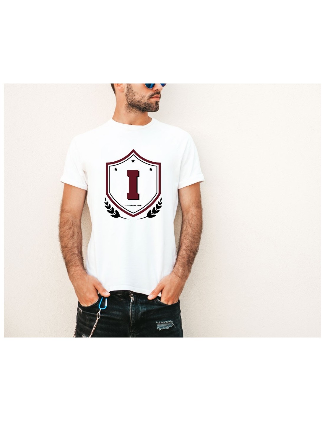 Original camiseta blanca decorada con tu inicial al estilo universitario.