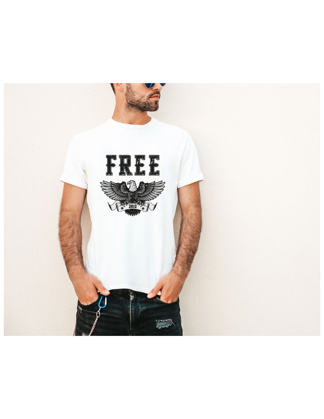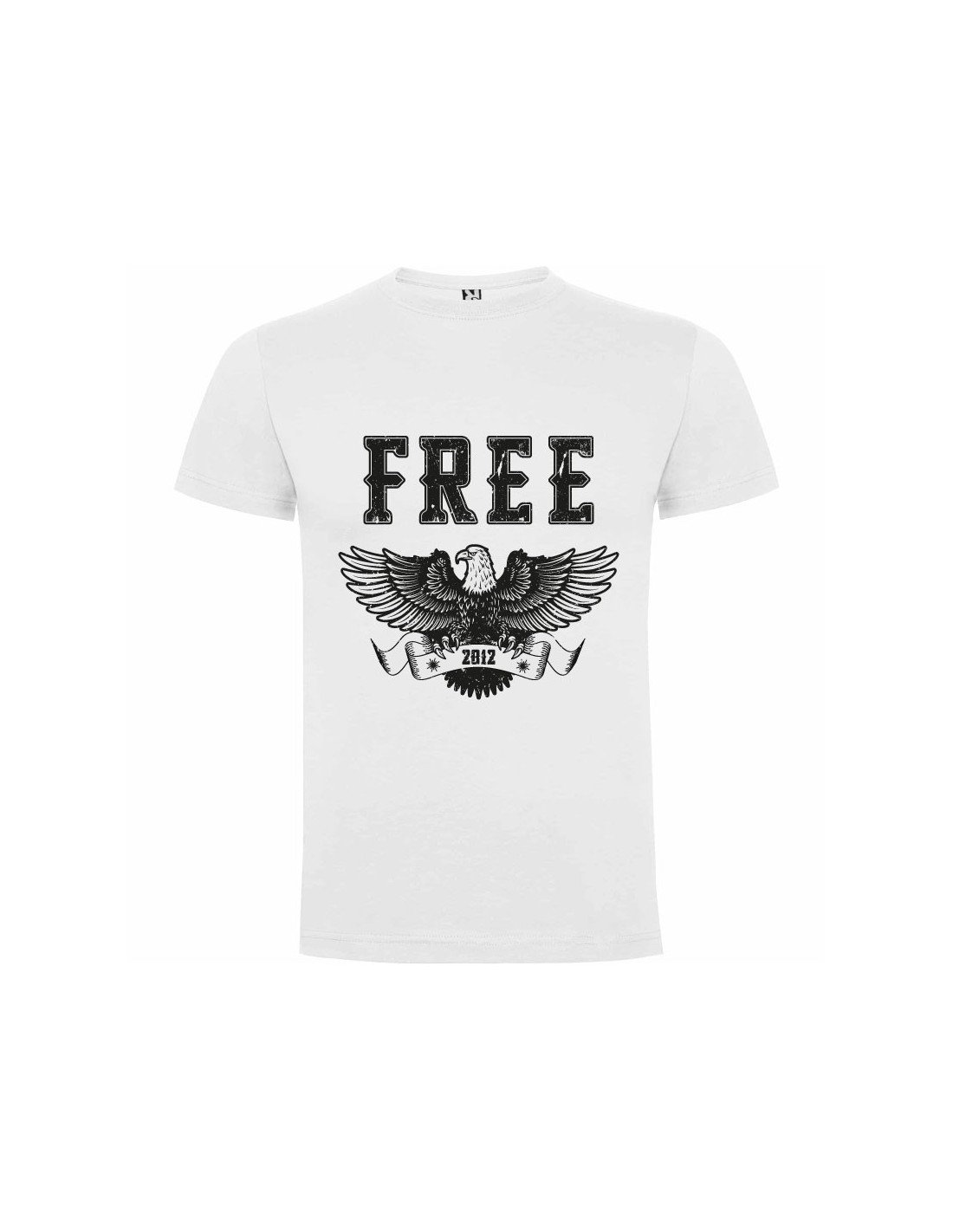Original camiseta blanca decorada con el texto "Free"