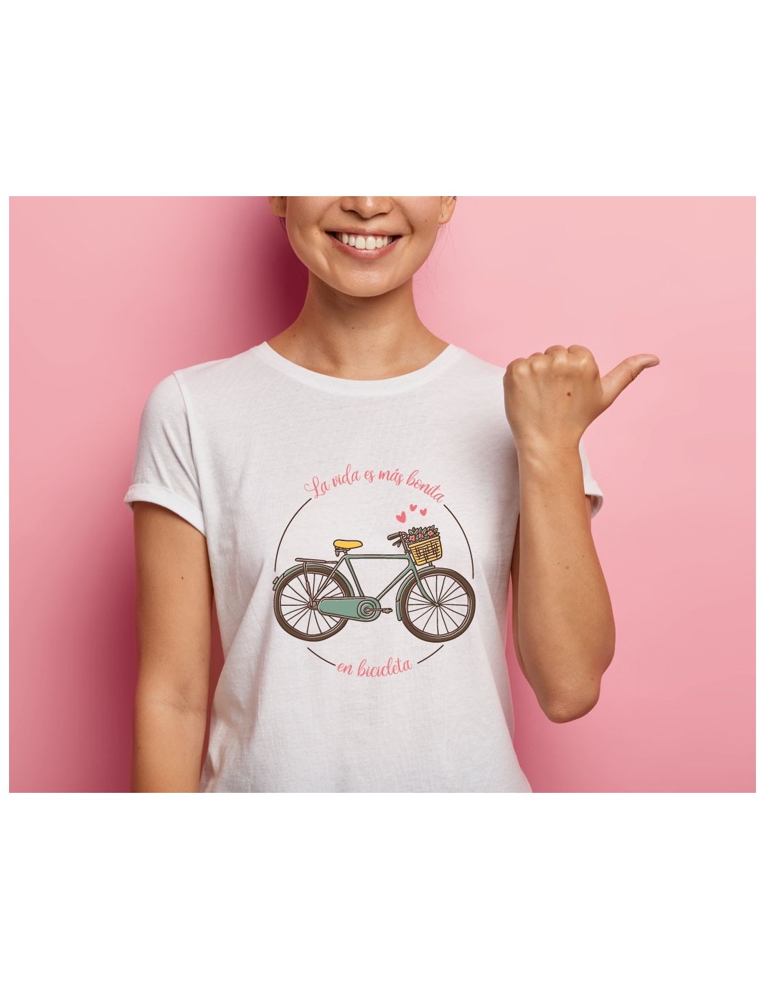 CAMISETA MUJER LA VIDA EN BICICLETA BLANCA