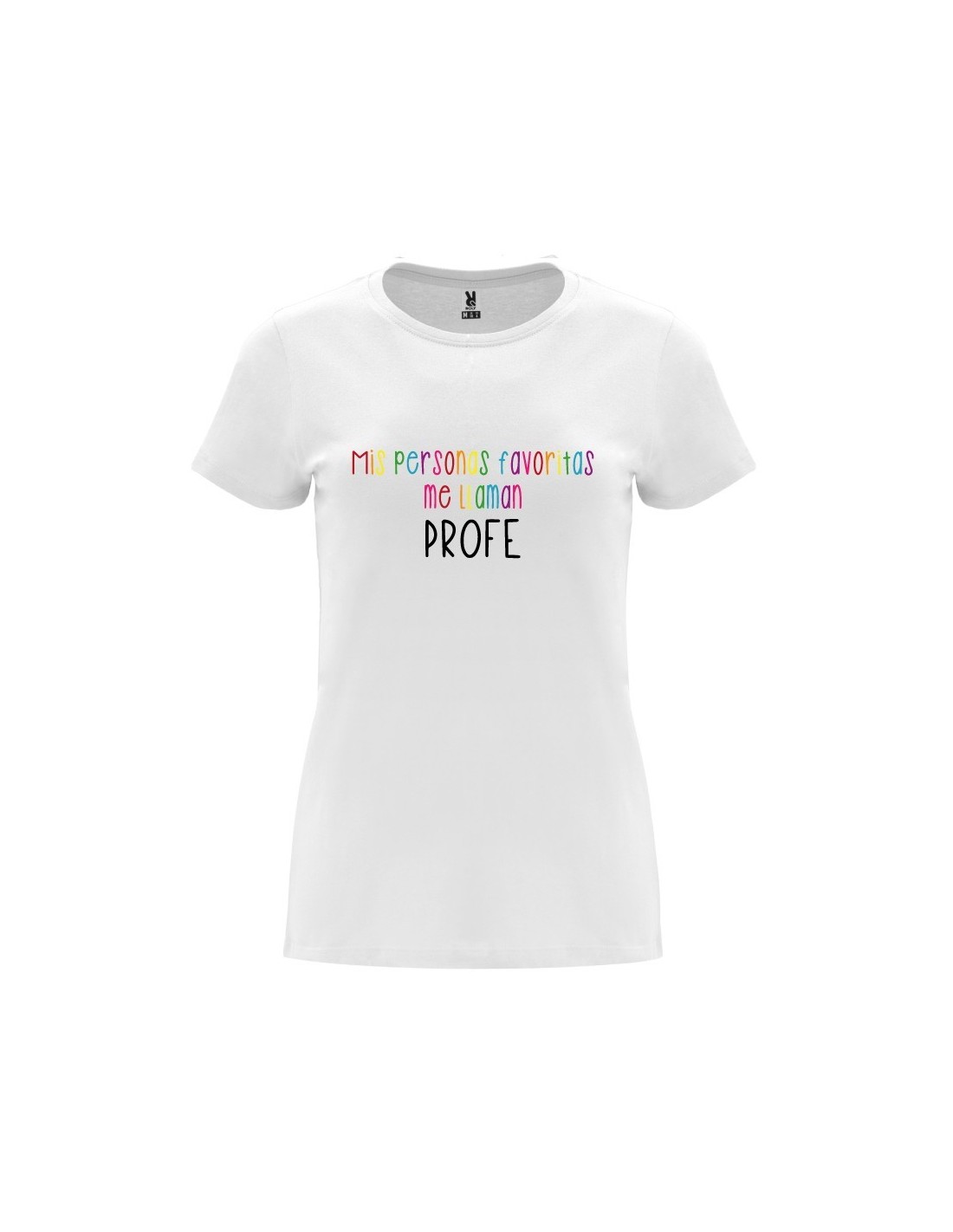Original camiseta blanca entallada decorada con el texto "mis personas favoritas me llaman profe".
