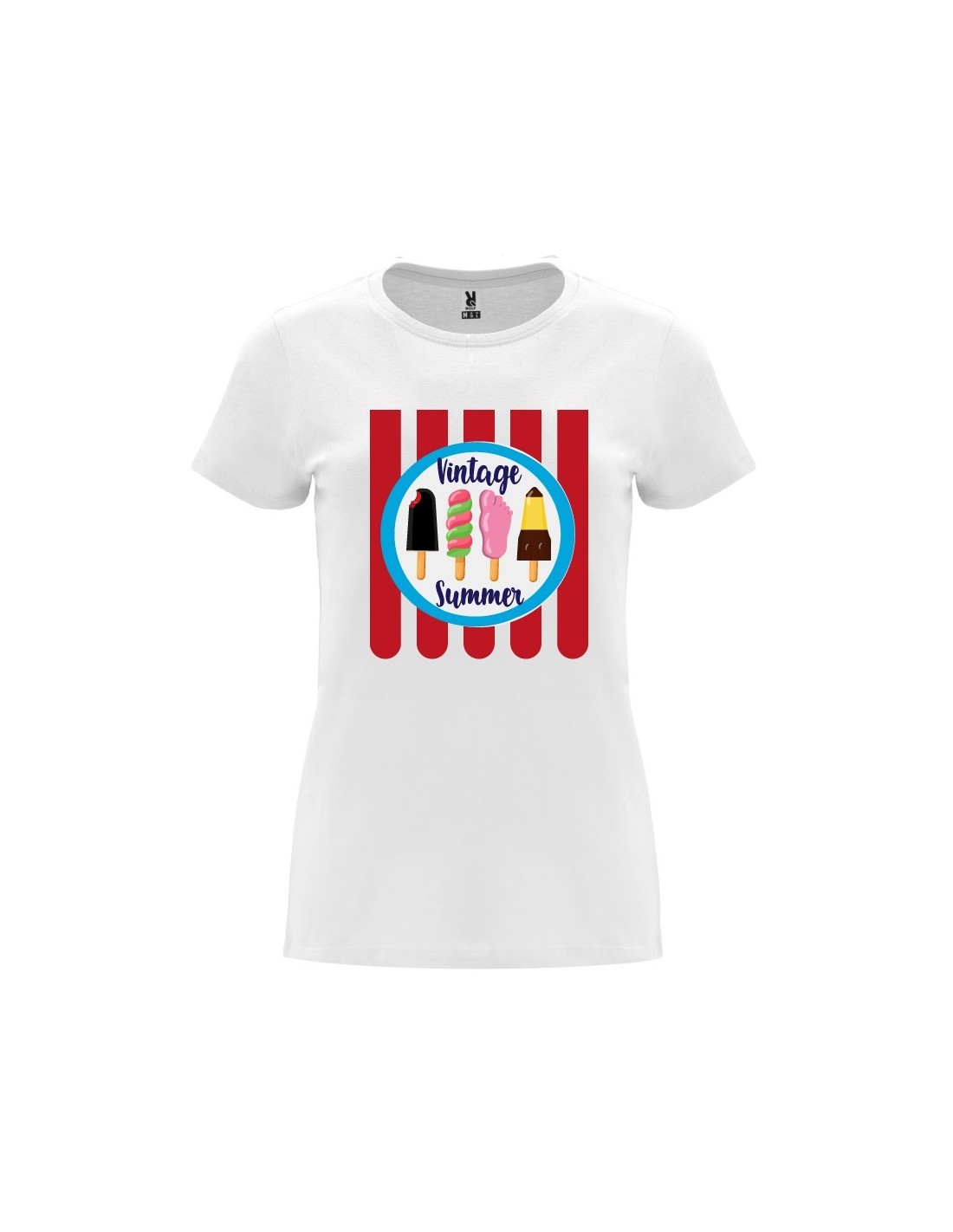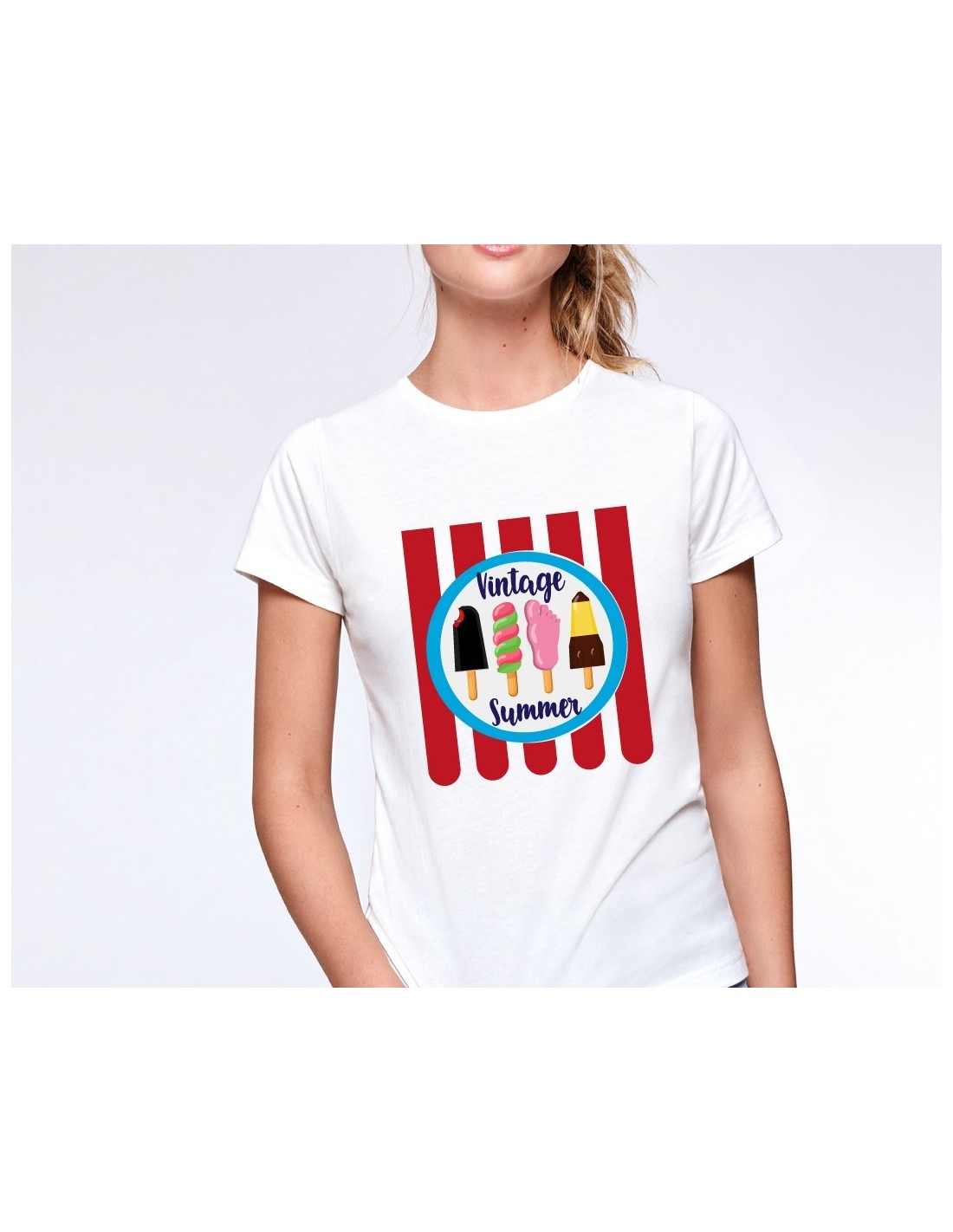 Original camiseta blanca entallada decorada con los clásicos helados de nuestra infancia.