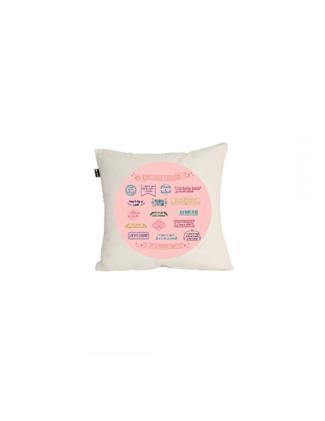 Original cojín decorativo de algodón decorado con las típica frases de madre.