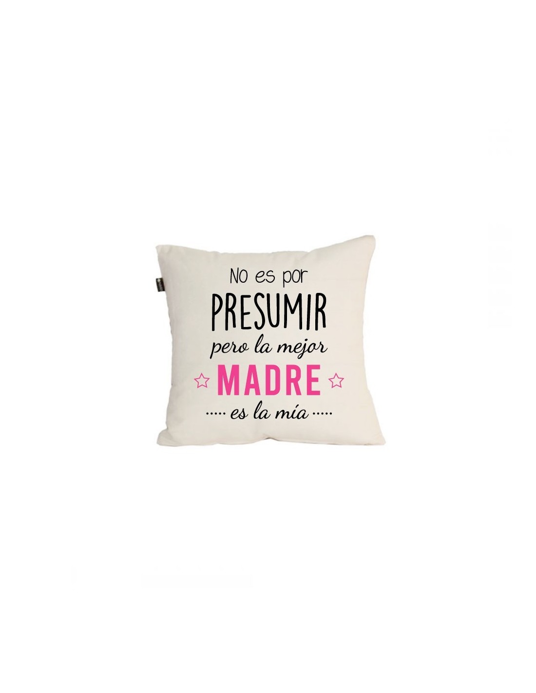 Original cojín decorativo de algodón decorado con el mensaje "no es por presumir pero la mejor madre es la mía".