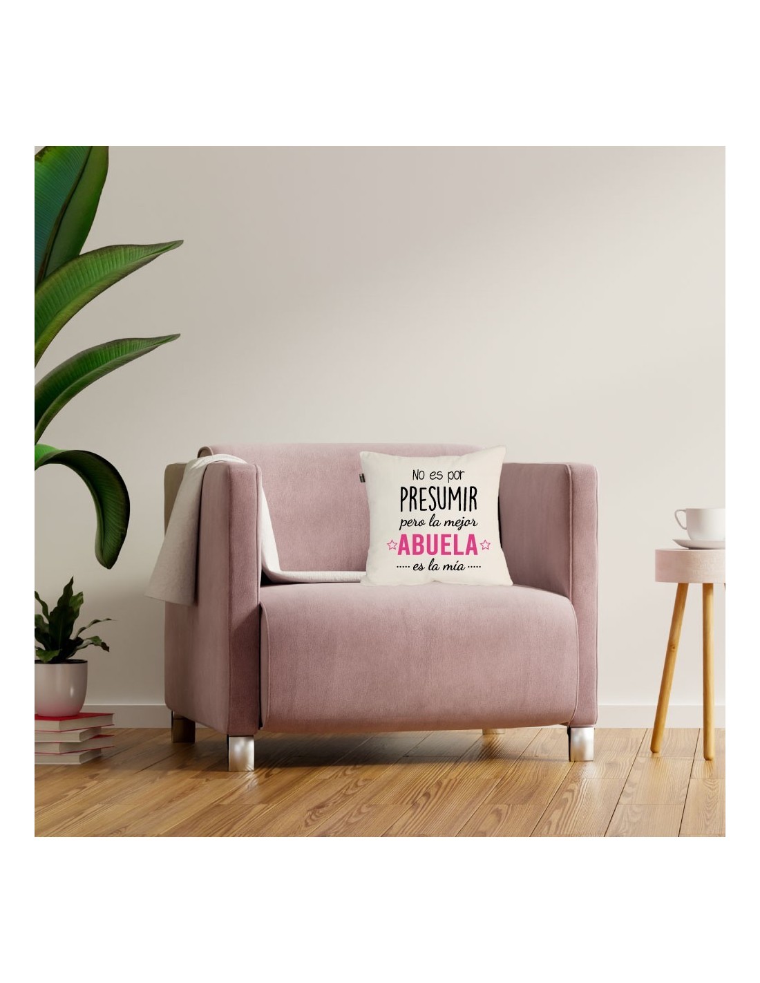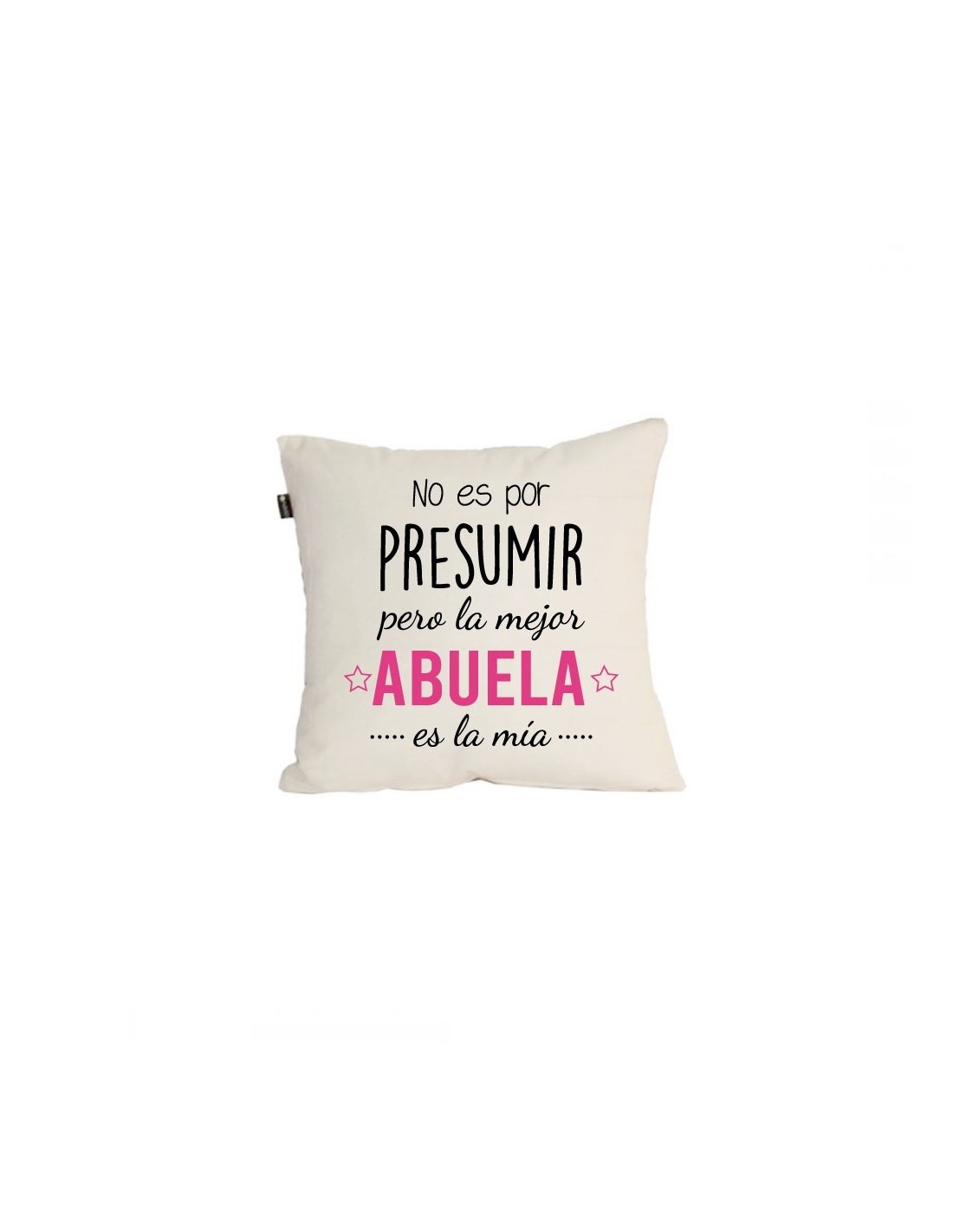 Original cojín decorativo de algodón decorado con el mensaje "no es por presumir pero la mejor abuela es la mía".