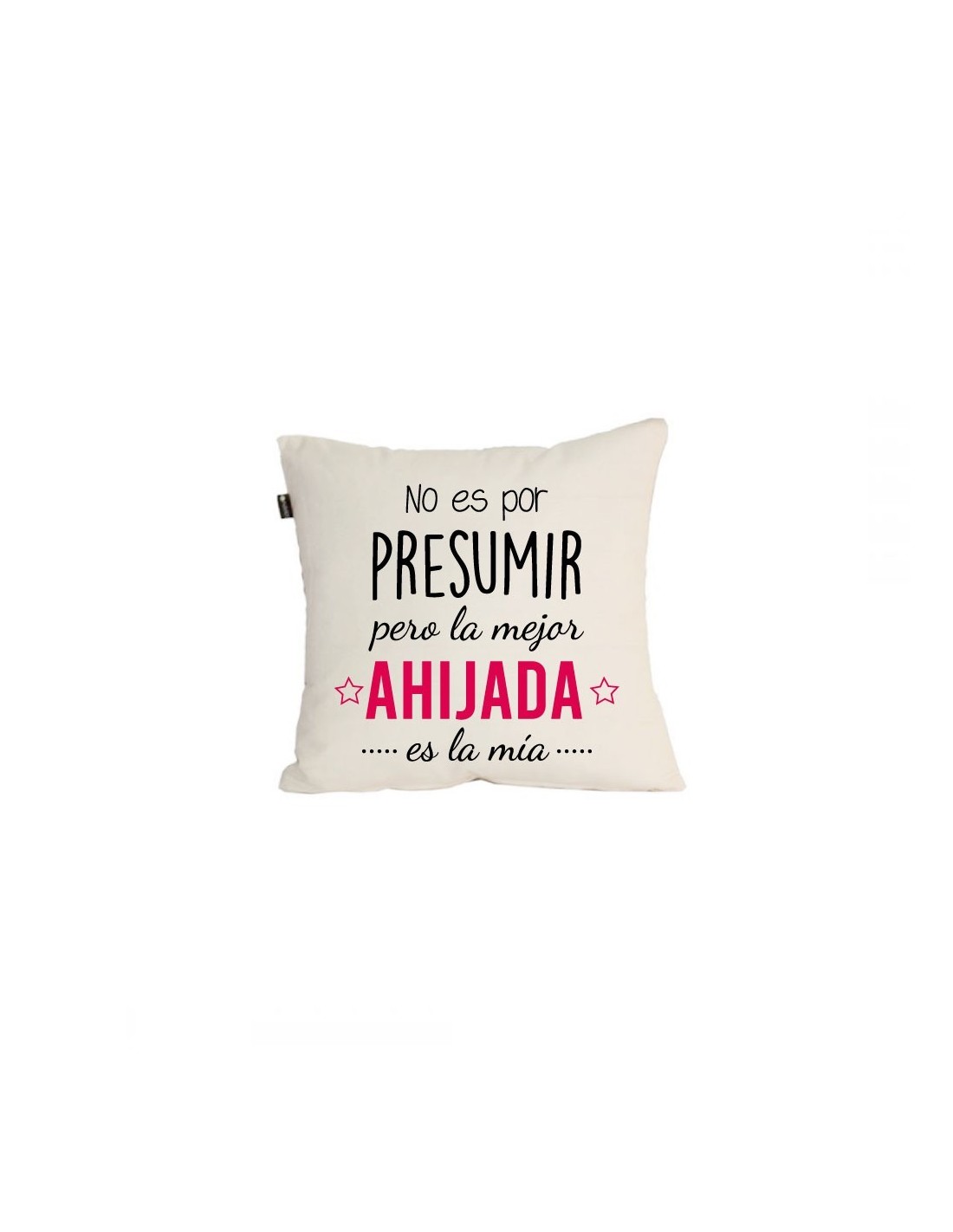 Original cojín decorativo de algodón decorado con el mensaje "no es por presumir pero la mejor ahijada es la mía".