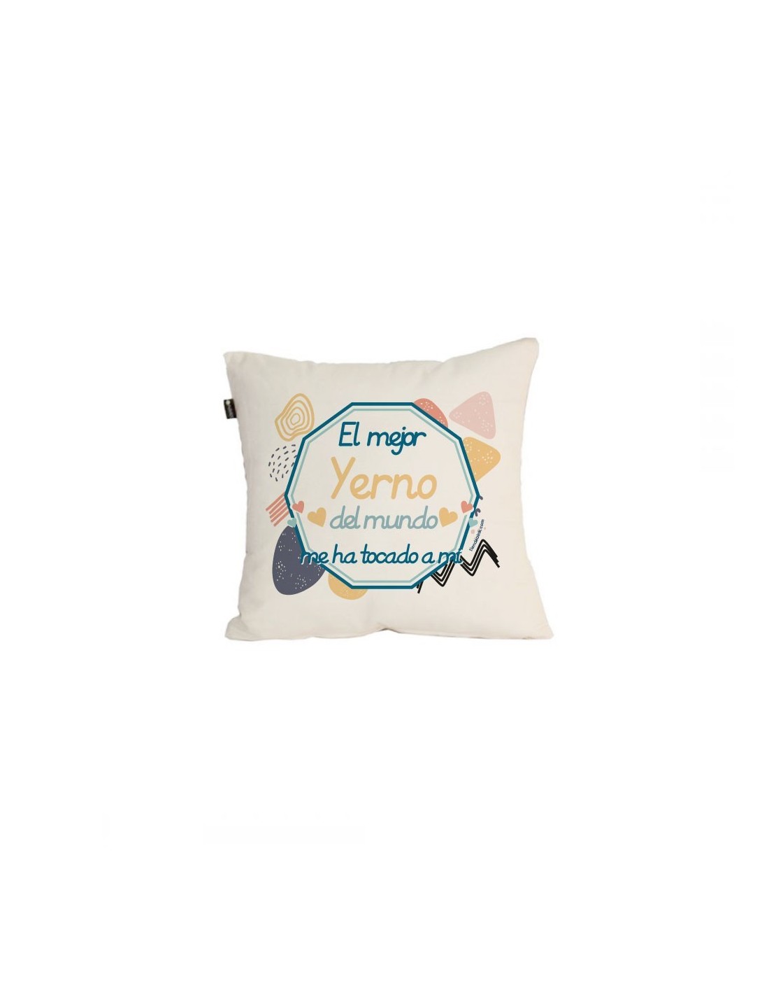Original cojín decorativo de algodón decorado con el mensaje "el mejor yerno del mundo me ha tocado a mi".
