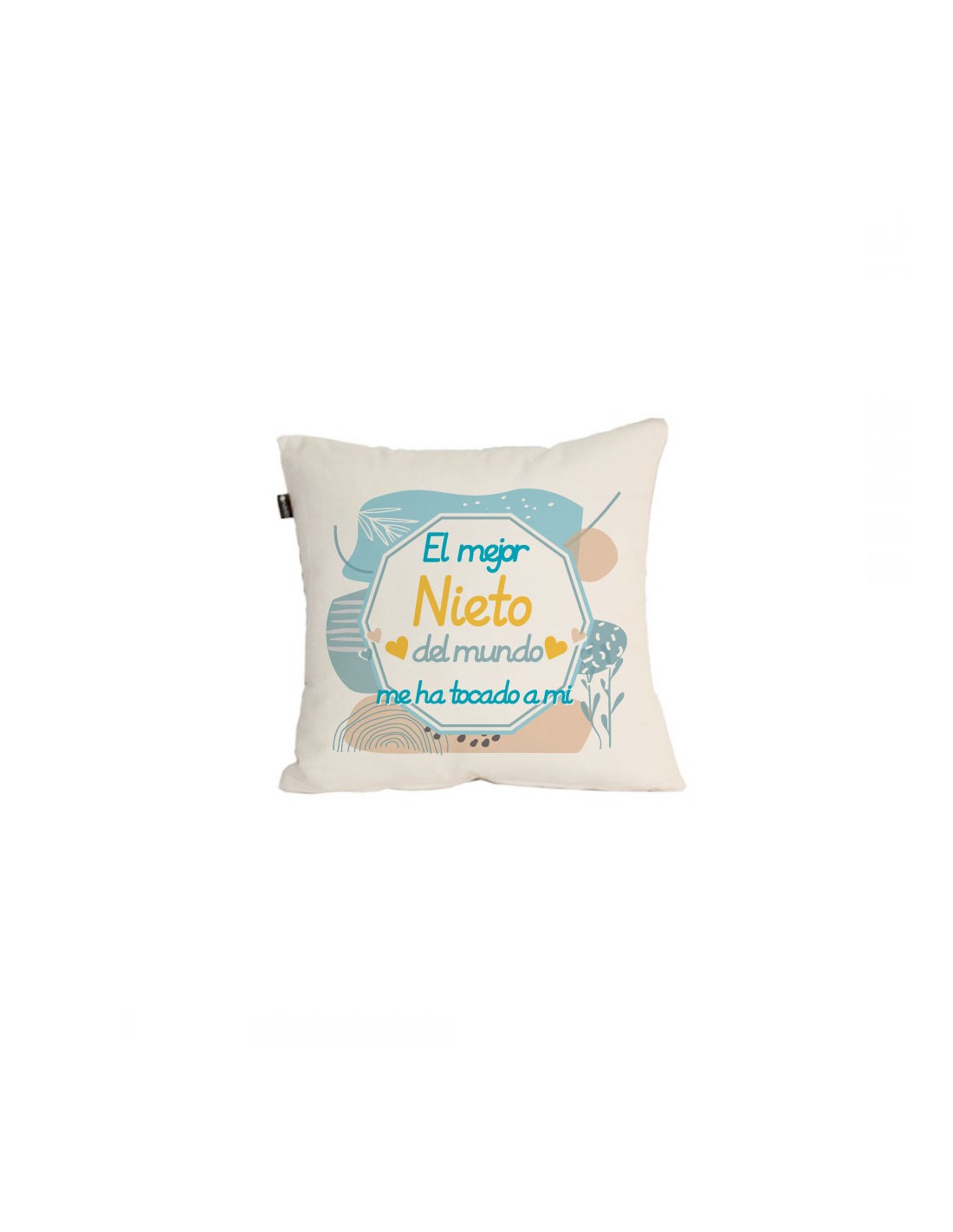Original cojín decorativo de algodón decorado con el mensaje "el mejor nieto del mundo me ha tocado a mi".