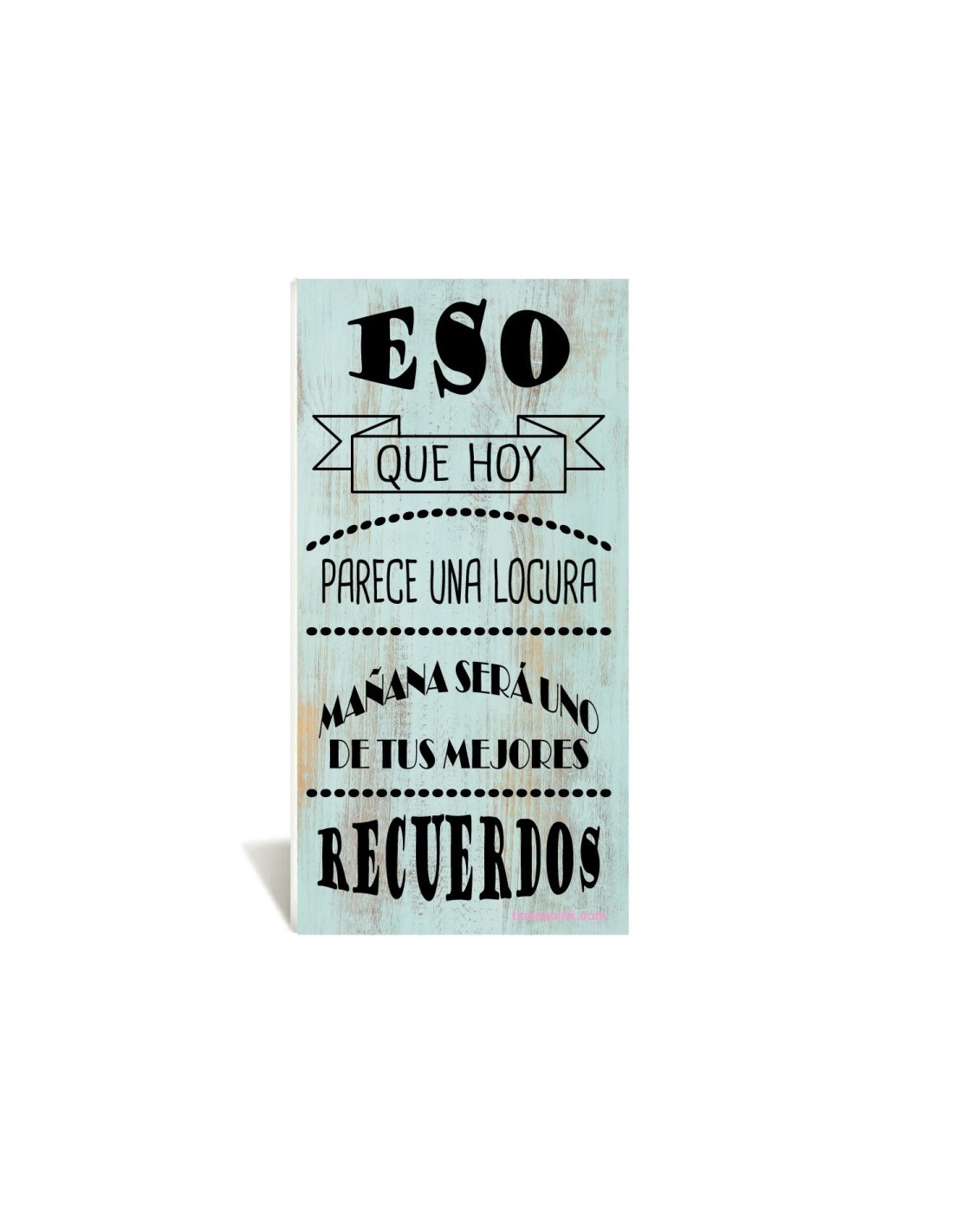 Original cartel adhesivo para pared fabricado en PVC con el mensaje "eso que hoy parece una locura, mañana será uno de tus mejores recuerdos".
