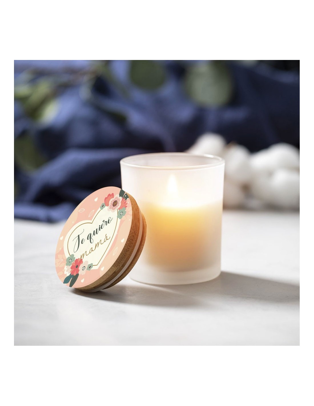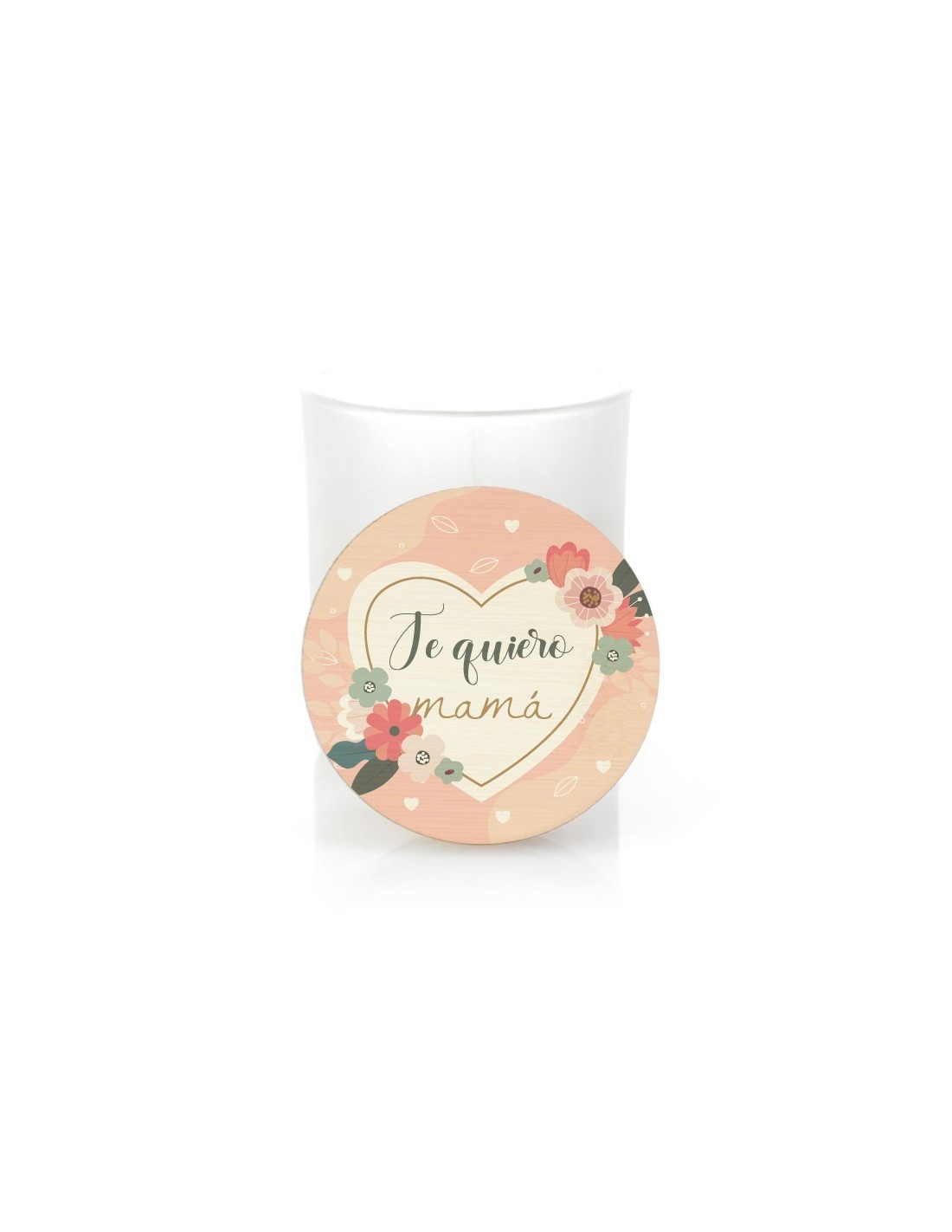 Original vela aromática en vaso decorada con el texto "te quiero mamá".