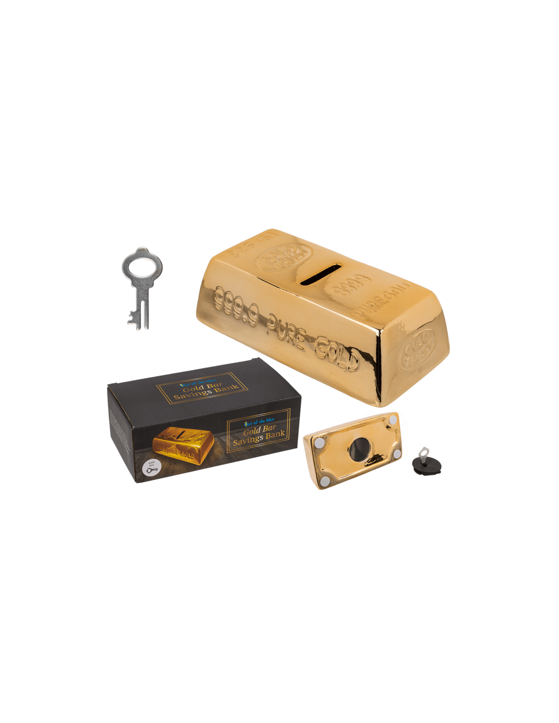 Hucha original lingote de oro de cerámica y acabada con colores brillantes. Para los mas adictos al oro.