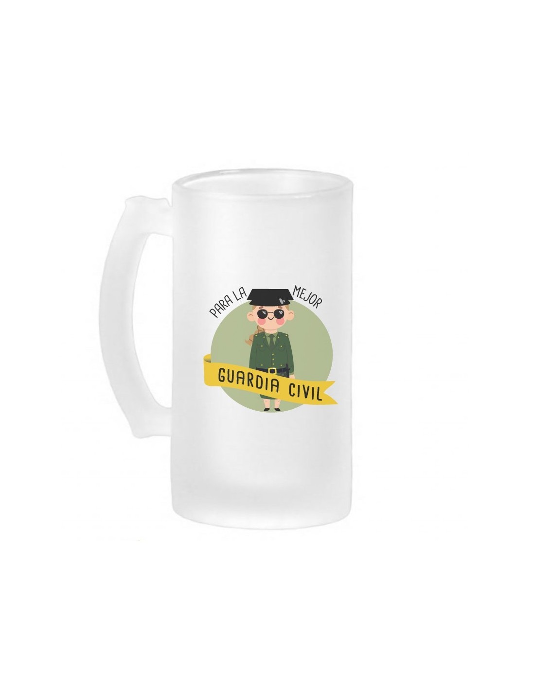 Original jarra de cerveza de vidrio esmerilado decorada con el mensaje "para la mejor guardia civil".