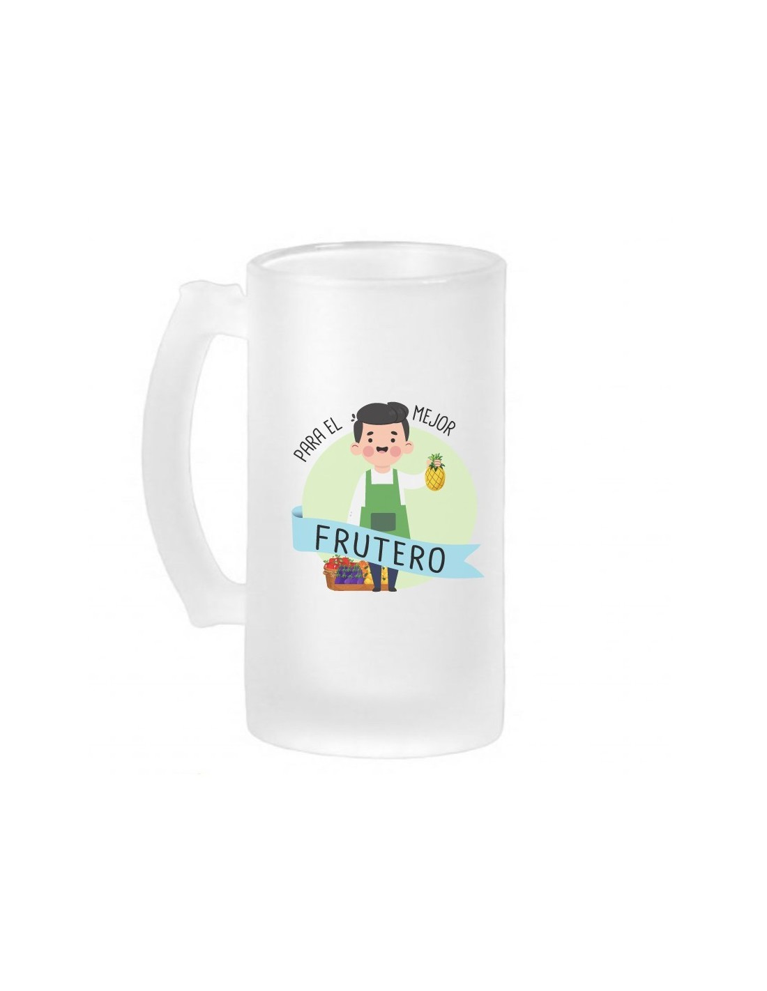 Original jarra de cerveza de vidrio esmerilado decorada con el mensaje "para el mejor frutero".