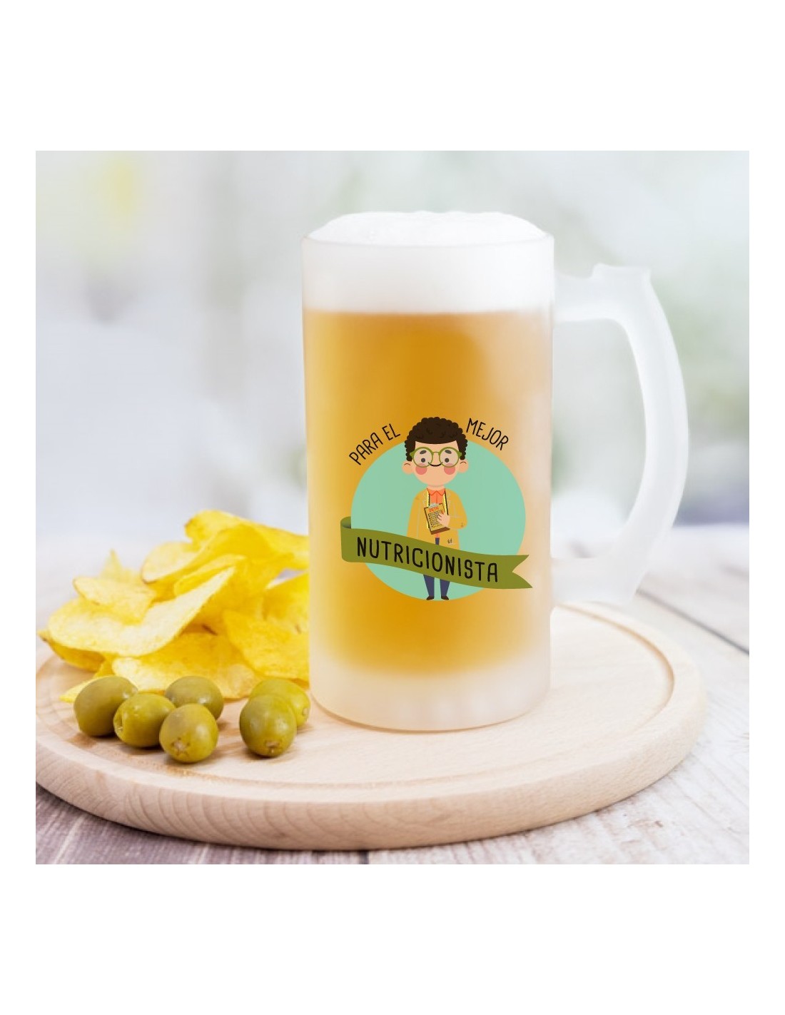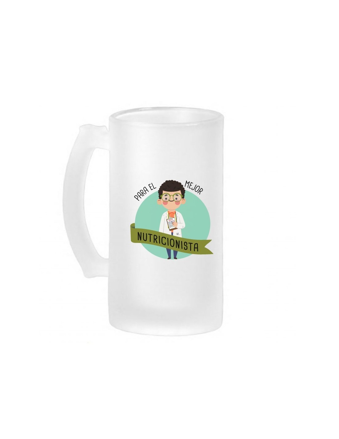 Original jarra de cerveza de vidrio esmerilado decorada con el mensaje "para el mejor nutricionista".