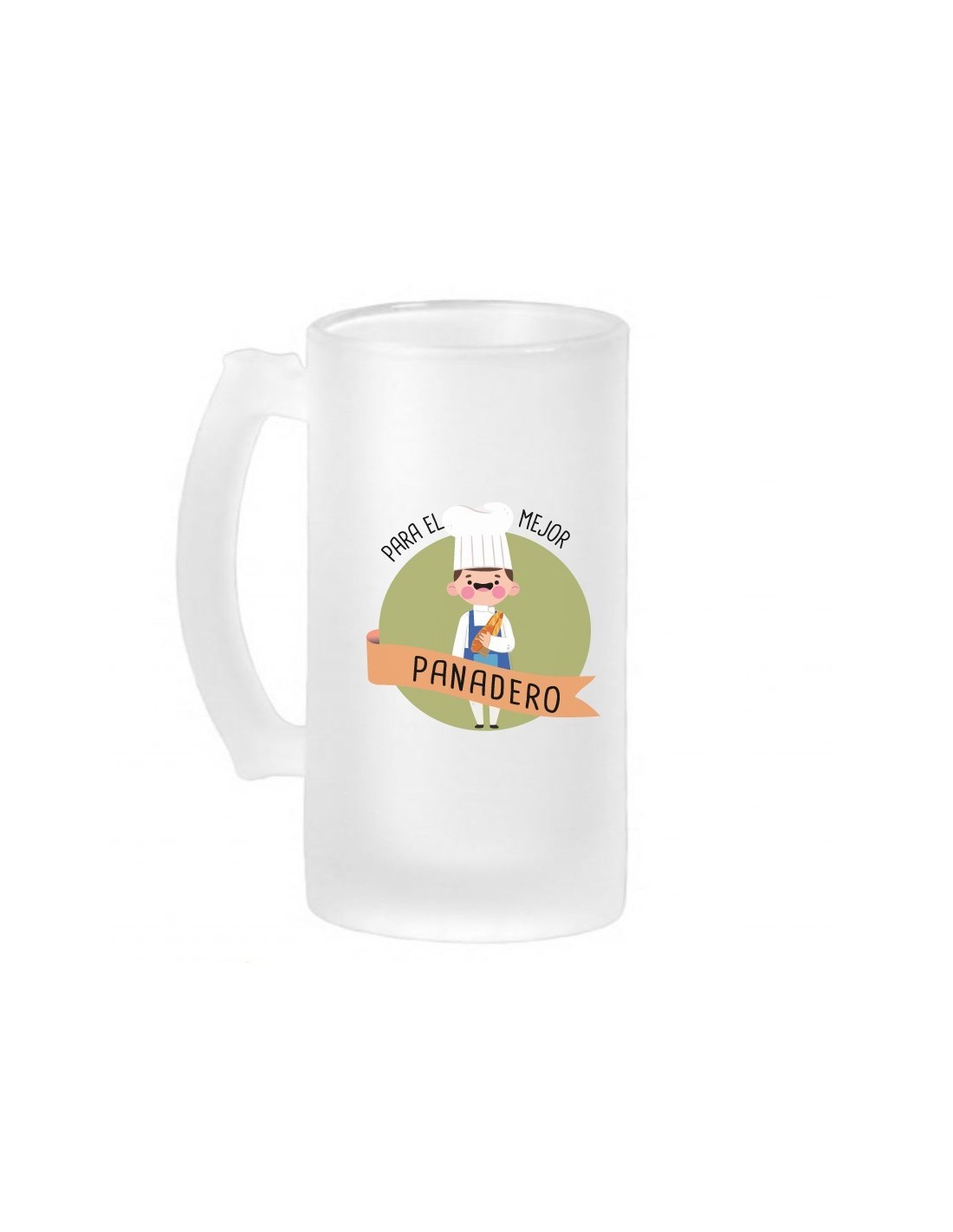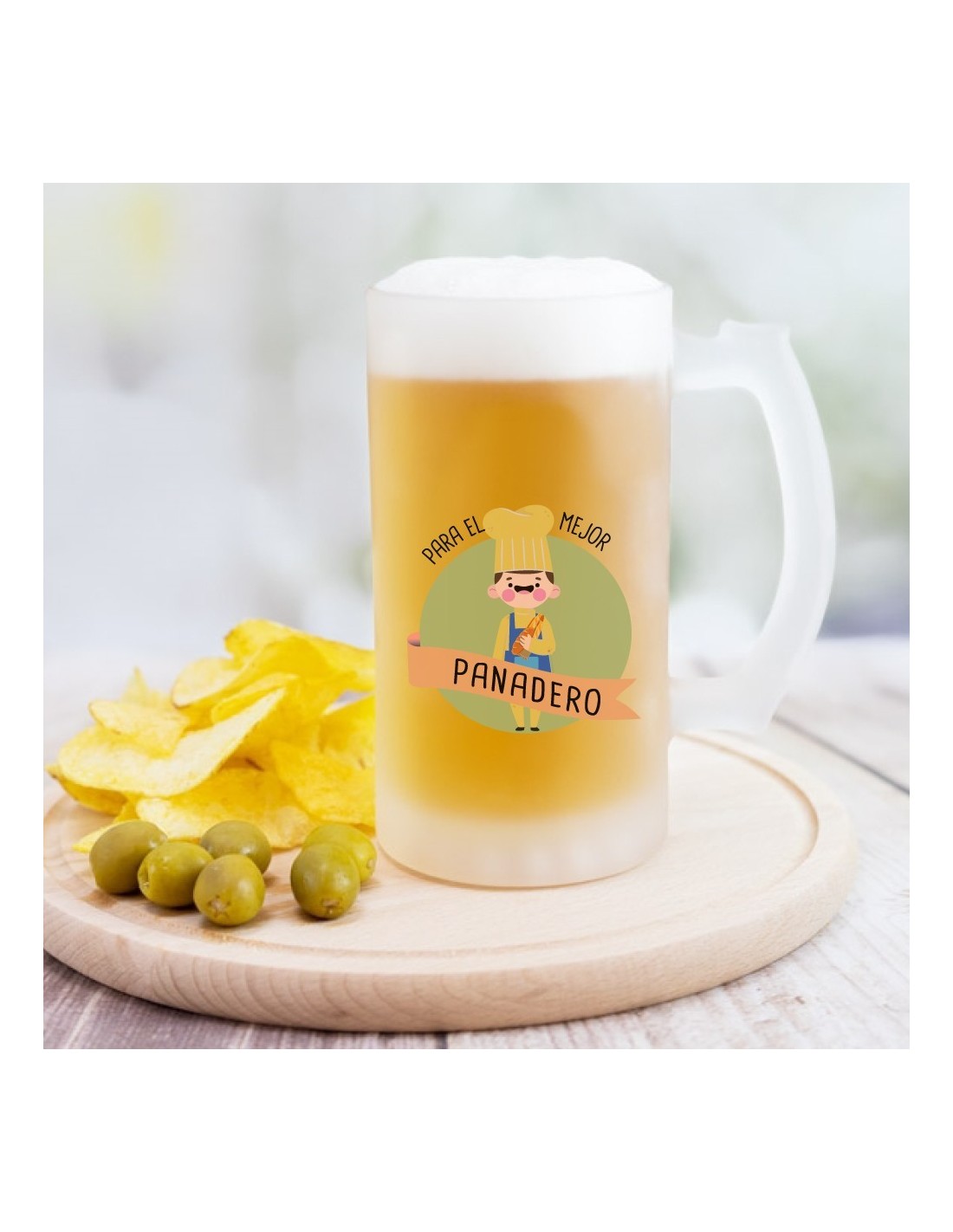 Original jarra de cerveza de vidrio esmerilado decorada con el mensaje "para el mejor panadero".